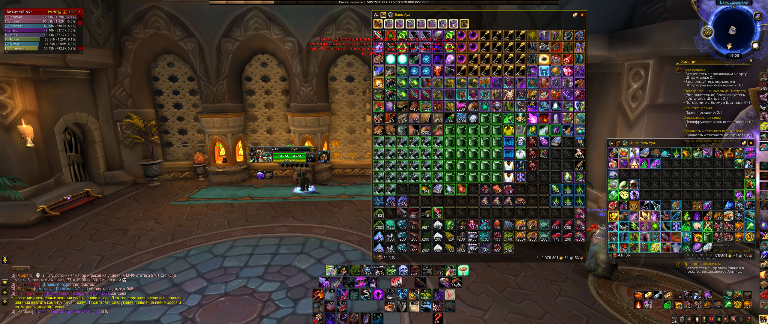 | Description | Добрый день! 27 недель честным образом через https://www.wowhead.com/ru/item=140774/%D0%B2%D0%B0%D1%83%D1%87%D0%B5%D1%80-%D1%85%D1%80%D0%B0%D0%BD%D0%B8%D0%BB%D0%B8%D1%89%D0%B0 лутал https://www.wowhead.com/ru/item=139585/%D0%B4%D1%8B%D0%BC%D0%BE%D0%B2%D0%BE%D0%B9-%D0%BF%D0%BE%D1%80%D0%BE%D1%88%D0%BE%D0%BA и складывал в банк. На 28 раз появилось сообщение "Нет места". Ну, подумал я: "Значит набрал максимум, больше нельзя". Стал брать другие доступные предметы. А после того, как я потратил пачку порошка, при попытке взять то, что я складывал в банк, получаю опять это сообщение "Нет места", но оно есть, и 27 слотов в банке заняты порошком, который я не могу оттуда взять. Просьба исправить этот баг, а так же сделать доступными мои порошки из банка, я не просто так их копил столько недель подряд. | ||||