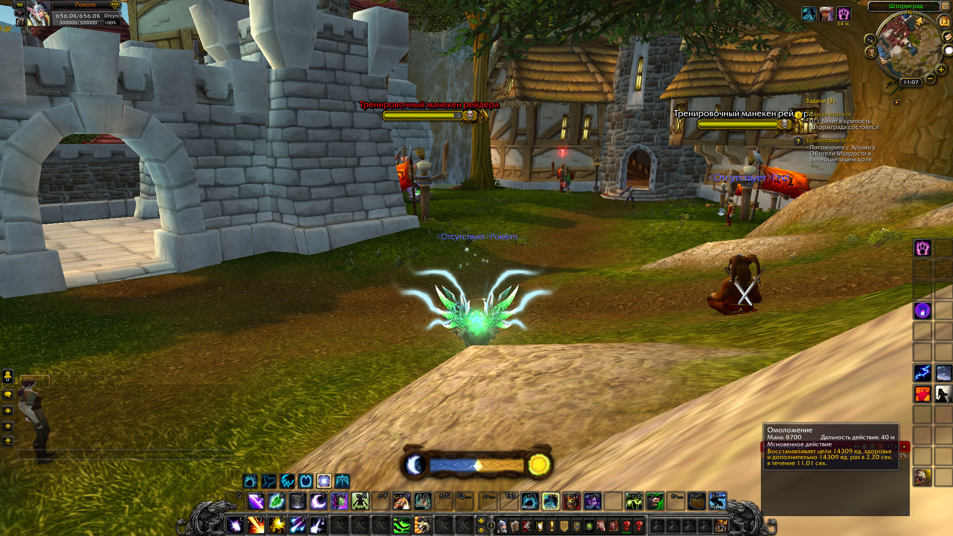 вот идет пассивный тик омоложения, я в этот момент продолжаю нажимать на способность без остановки, видно что хилла в момент применения нет, хотя цифры отхила должны идти друг за другом в момент прожимания скилла |