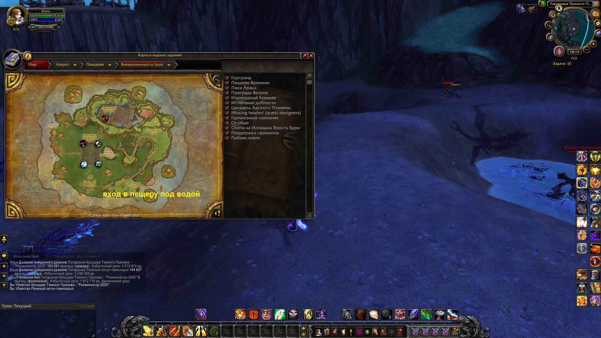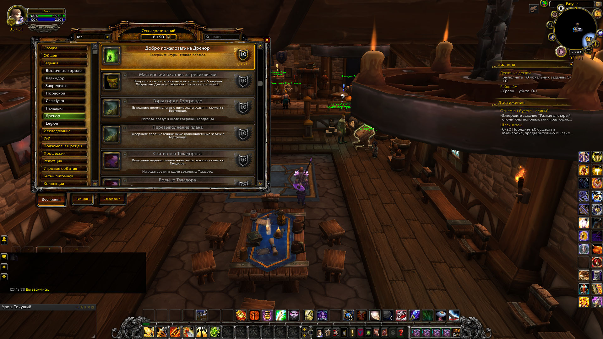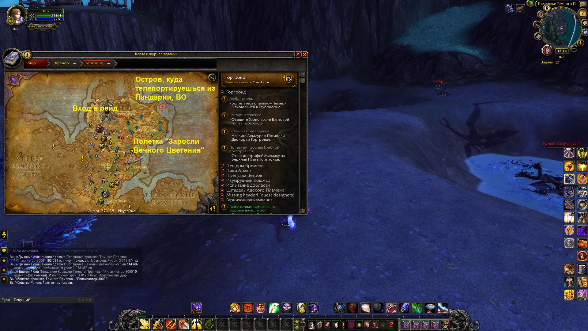 Извините, забыла написать шаги воспроизведения: 1. Попасть на Дренор через портал в Ашран в столицах (Штормград / Оргриммар), если все полетки по Дренору доступны, как сейчас (скорее всего, в честь праздников); 2. Долететь до ближайшей ко входу полетки (обычно это Заросли Вечного Цветения, Горгронд); 3. Пешком дойти до входа в рейд; 4. Зайти в рейд; 5. Проходя спокойно рейд, дойти до Ка`граз Пламенная$ 6. Выполнить все действия, нужные для ачивки (т.е. убить босса, не убивая при этом помощника Акнора Сталеноса); 7. !Получить ачивку!, при этом не имея гарнизона и не проходя начальную цепочку Дренора. ИЛИ 1. Попасть на Дренор через портал в пещере на Вневременном Острове, Пандария в Горгронд (пещера находится под водой, в самой пещере стоят стулья вокруг костра, на который можно нажать - произойдет телепортация); 2. Сделать все то же самое, как описано выше в п. 3-7. WoWScrnShot_011023_181547.jpg (653,201 bytes) WoWScrnShot_011023_181609.jpg (693,772 bytes) |