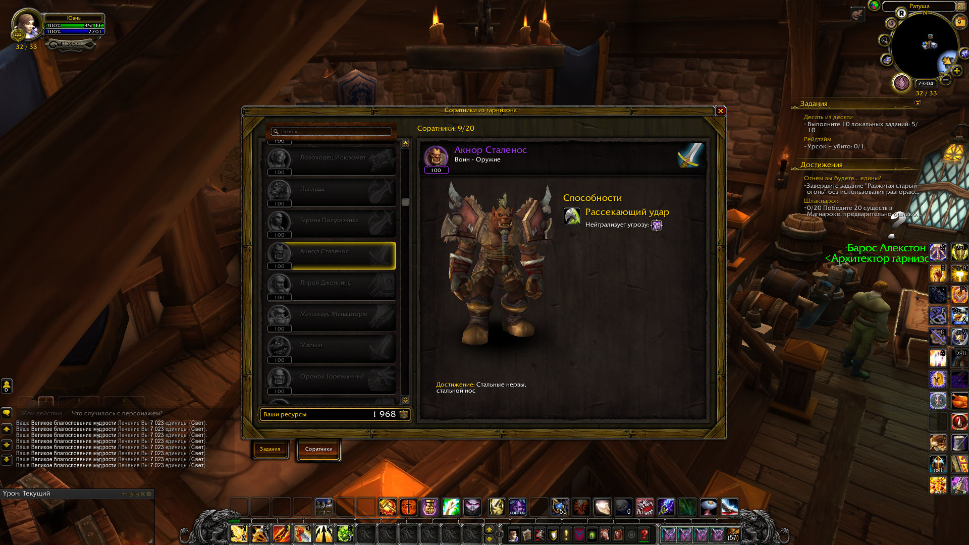 Баг подтверждён. На представленном видео видно, что получить достижение https://www.wowhead.com/ru/achievement=8929/стальные-нервы-стальной-нос возможно только при наличии созданного гарнизона, а соратник https://www.wowhead.com/ru/follower=225/акнор-сталенос может быть получен при повторной попытке. https://youtu.be/Gm5yQurEAMw |