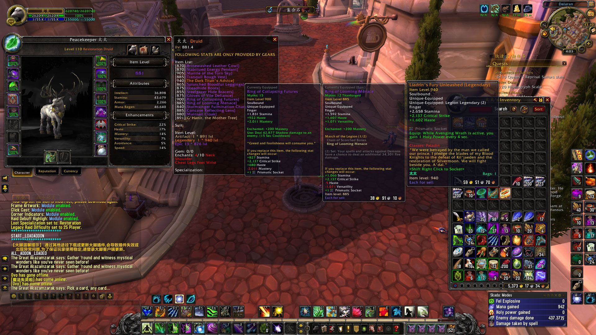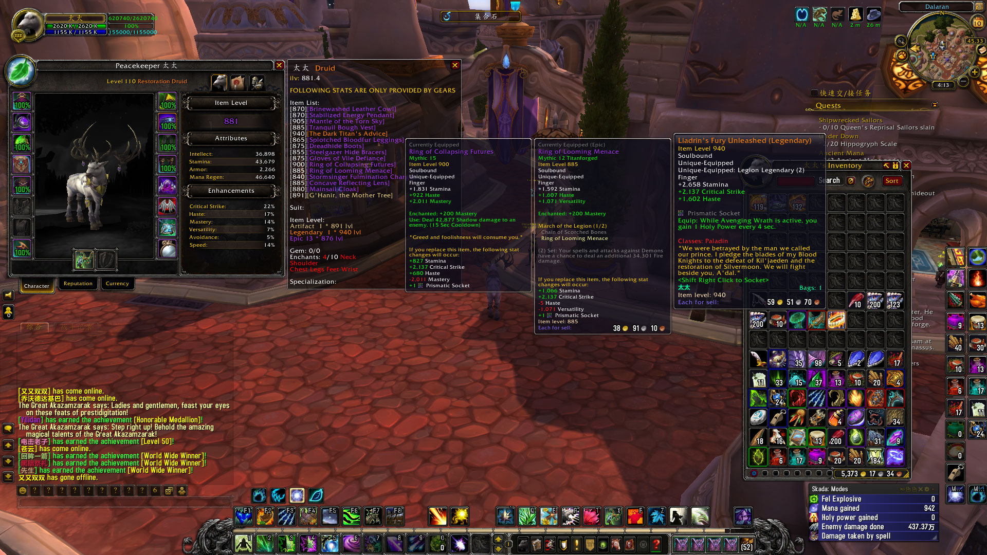 | Description | ID: 太太 level 110 Restoration Druid ...hope to change a legendary item for resto druid item. | ||||