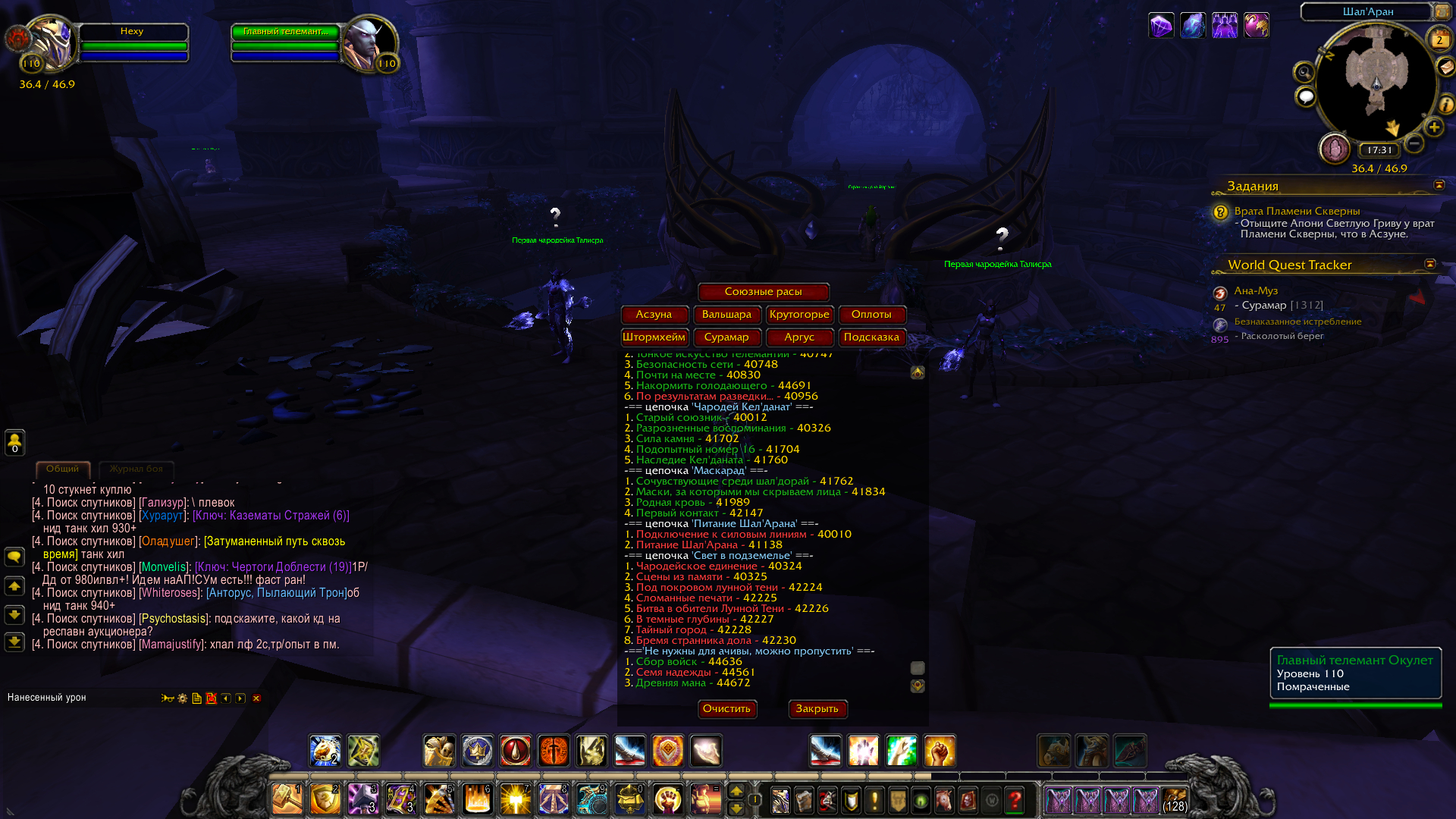 Здравствуйте! У нас сейчас заканчивается переработка Штормхейма, дальше будет Сурамар. В первую очередь попрошу уделить внимание этому квесту |