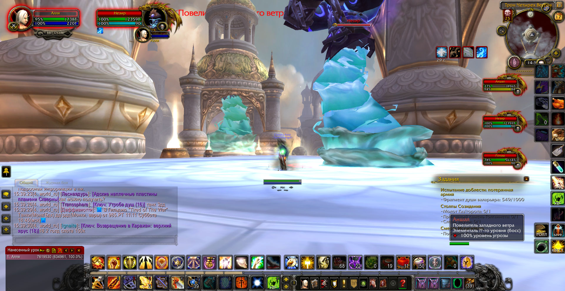 | Description | достижение Прохладный прием невозможно выполнить. В ТЧВ после того как от Рохаша остается одна шапка и 1%, перехожу к Незиру, собираю 7-8 стаков Холодного ветра, убиваю его до 1% в это время у Аншала собирается 200 стаков Зефира он выростает до огромных размеров и не берется в таргет, после минуты беганья убивается до 1% а два других босса становятся фул хп. Уже три дня прыгаю, обновляю и тот же результат | ||||