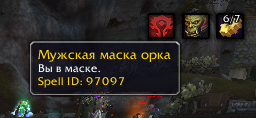 Кароче, как попадаю на бг, эта маска одевается 97079 или 97097 айди её, после первой смерти на бг, она пропадает и появляется знак орды 81744 |