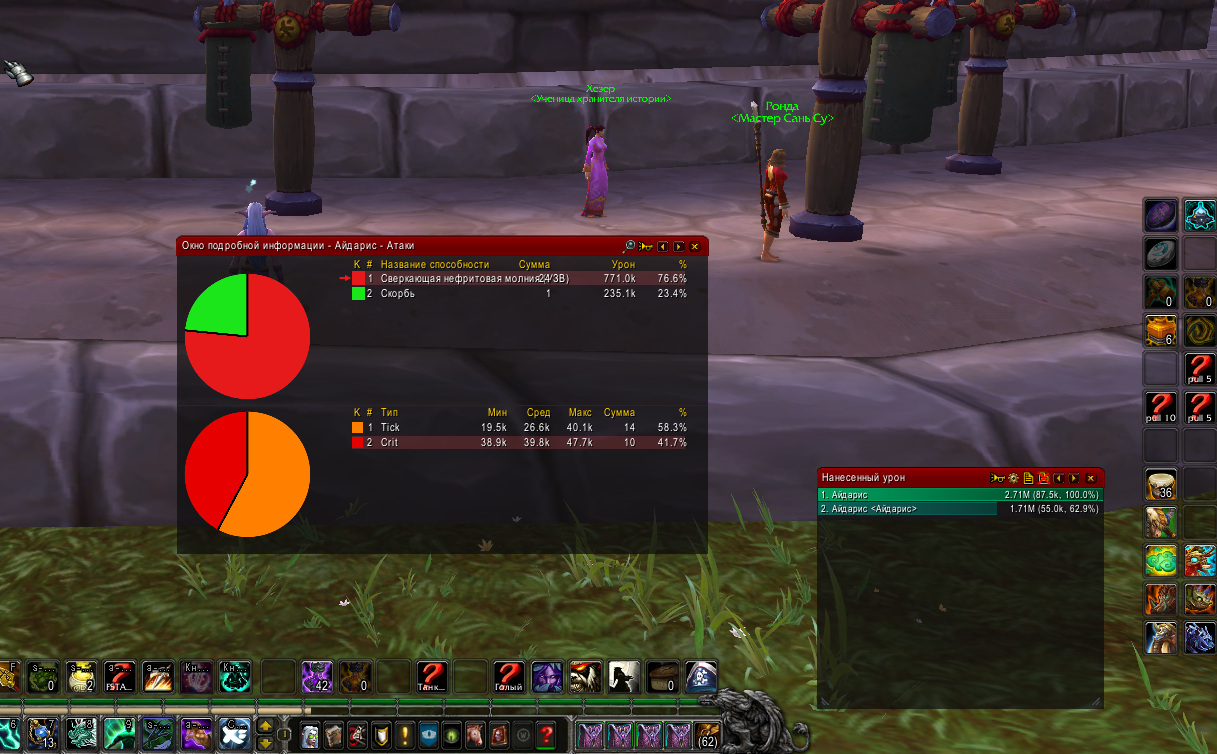 Ок, прошу так же проверить, если вдруг упустили в переписке, момент про вероятность критического удара для этого спелла (см. выше), т.к. там действительно он довольно низкий, 2 копии выдают до 10% критических попаданий от общего количества тиков, в то время, как основной персонаж исправно наносит нормальное количество критических ударов молнией. |