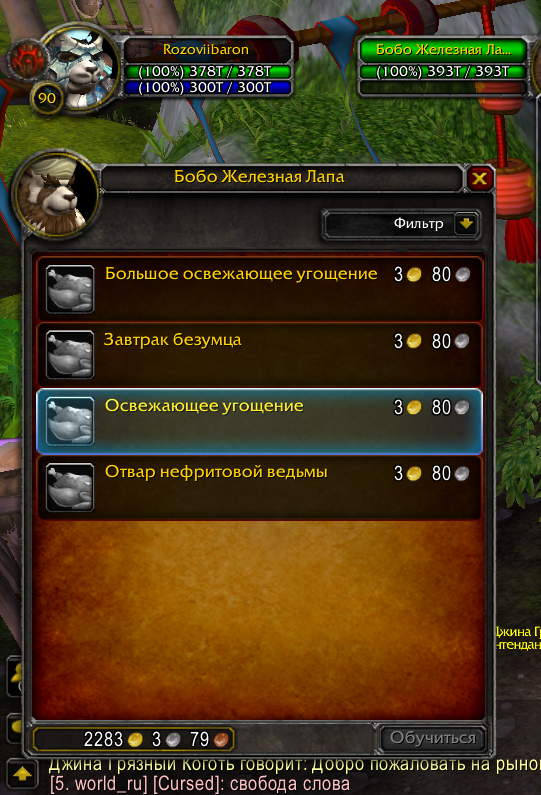 | Description | Не дает изучить ничего кроме первого рецепта у вендоров, считаю данный баг важным так как кулинария дает сильные рейд баффы | ||||