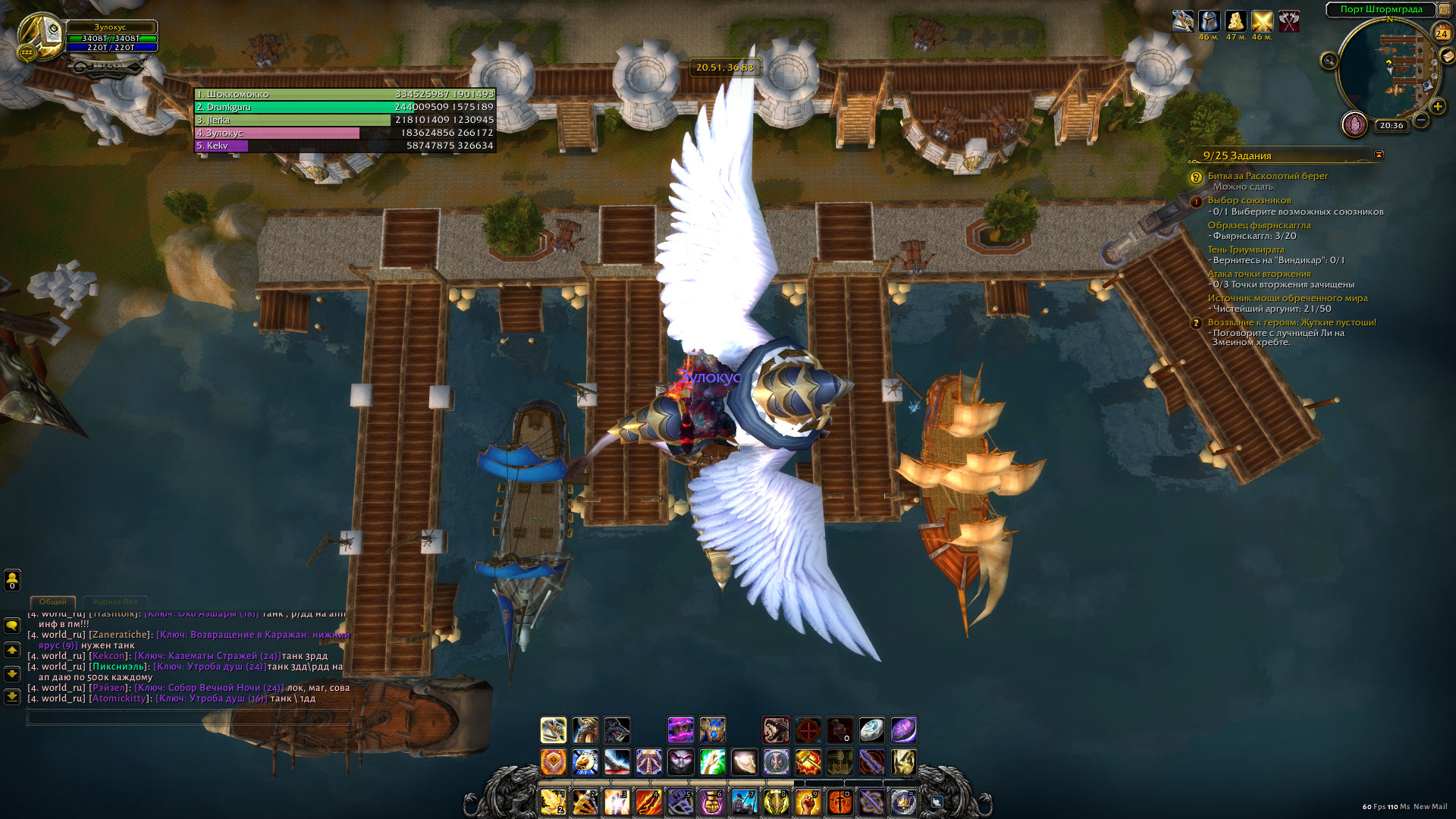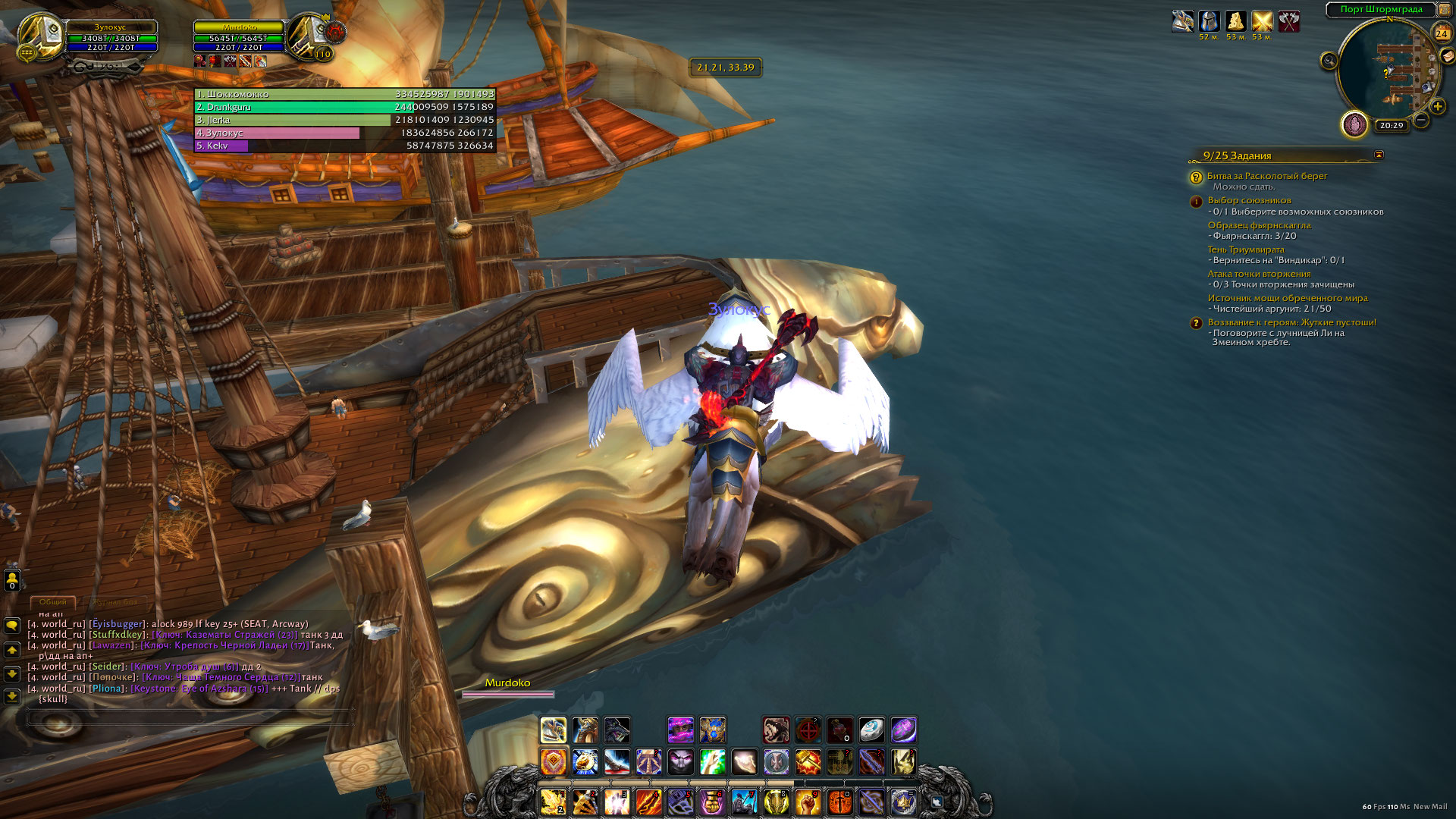Здравствуйте. Ничего не изменилось, квест для Альянса также не рабочий. Корабля в воздухе нет. |