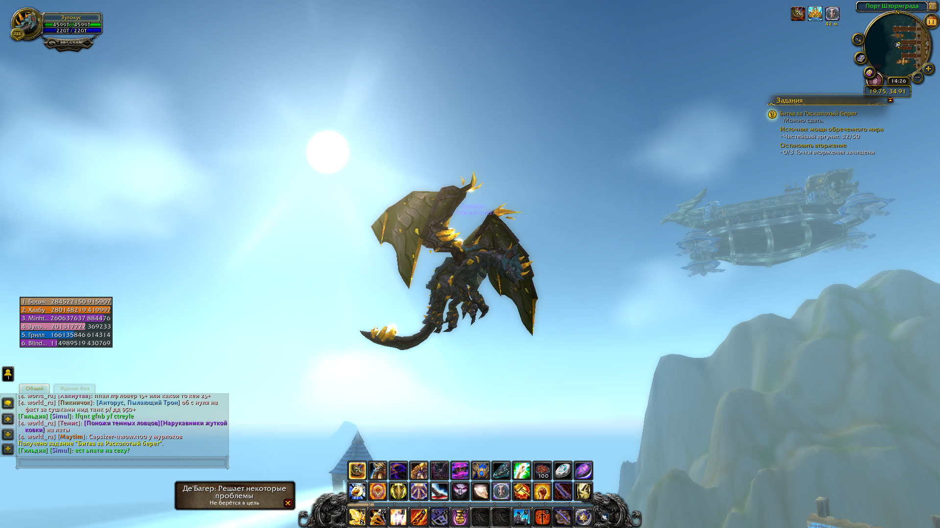 | Description | За Альянс не возможно завершить https://www.wowhead.com/ru/quest=42740/%D0%B1%D0%B8%D1%82%D0%B2%D0%B0-%D0%B7%D0%B0-%D1%80%D0%B0%D1%81%D0%BA%D0%BE%D0%BB%D0%BE%D1%82%D1%8B%D0%B9-%D0%B1%D0%B5%D1%80%D0%B5%D0%B3. После пропуска РБ, в небе нет корабля с Седогривом. Персонаж просто падает в воду с высоты, где должен находиться корабль. Баг делает невозможным прохождение сюжетки за алых, это больше чем критично. Проверил на двух системах, win7 и win10 64. Кэш чистил, обновил клиент. Скрины прикрепляю, видно что корабля нет на месте и сдавать задание некому. | ||||