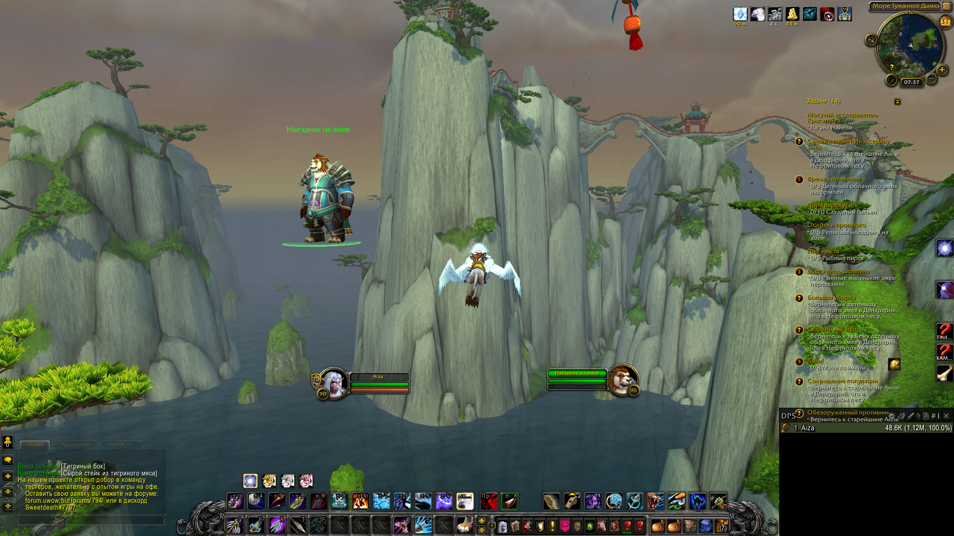 В локации где выполняются дейлики на репутацию облачного змея в нефритовом лесу, это обычный НПЦ не квестовый вроде (баг чисто визуальный) |