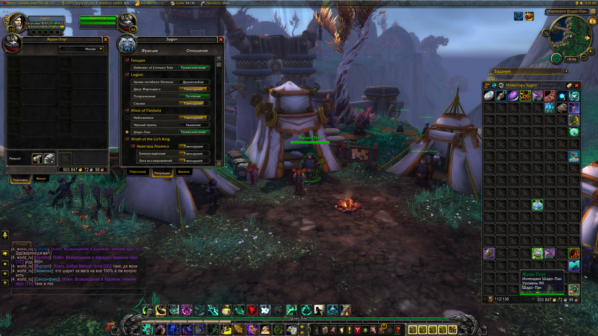 Я больше скажу — не работают вообще ВСЕ интенданты фракций Пандарии... Ещё какое-то время назад всё было в порядке. |