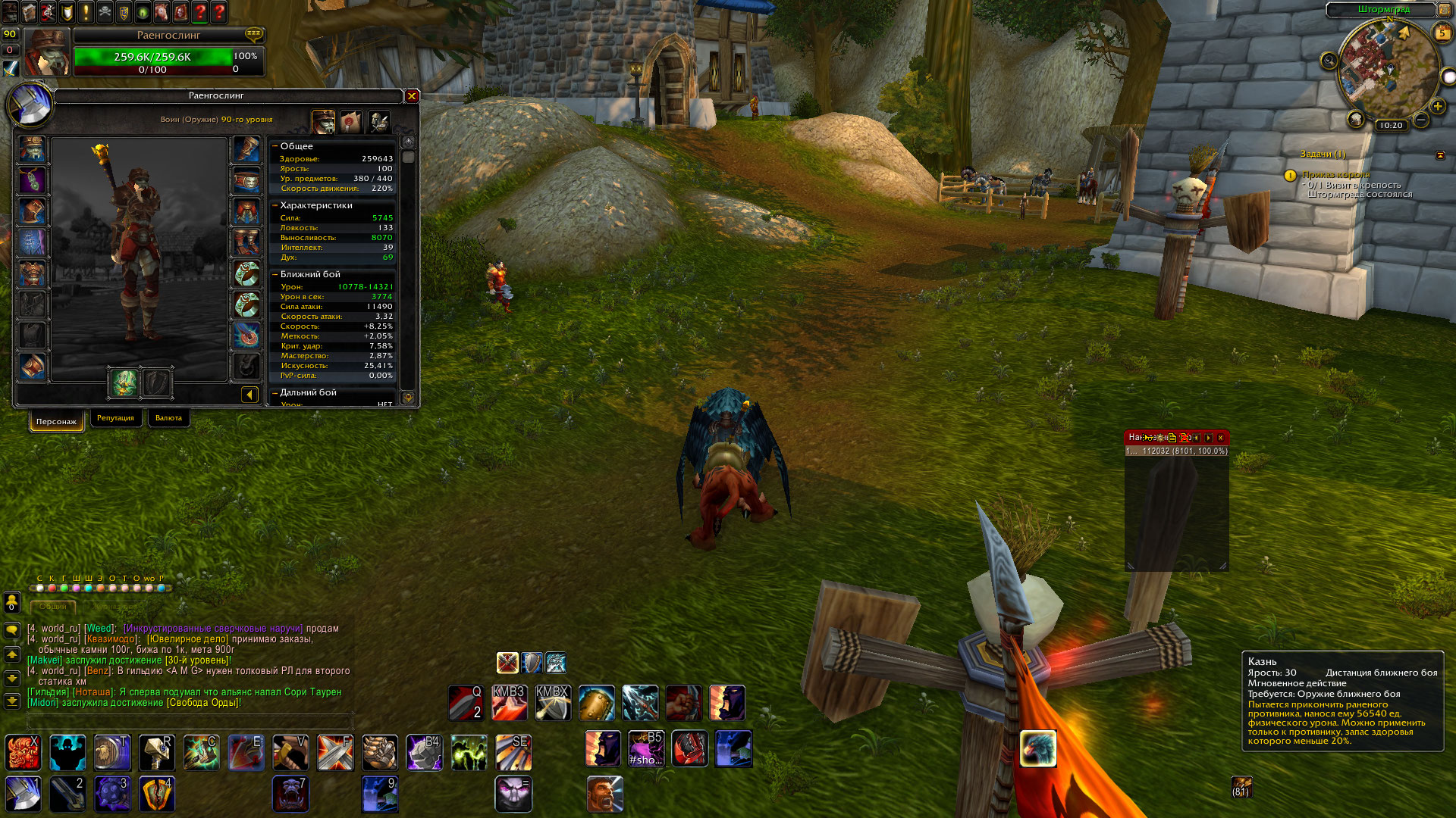 | Description | Судя по всему не верная формула скилла "казнь" https://db.pandawow.me?spell=5308 , тут написано что урон равен 255% от силы атаки + 25% от пассивки http://db.pandawow.me/?spell=12712 "умелый воин" на этот скилл она распространяется, а вот на мортал, колосс, мощный удар-нет(к слову просто). Если посчитать по статам моего персонажа со скрина, то урон должен быть 32 172 с учетом пассивки 25%, однако пишет 56540. пвп силу специально убрал. | ||||