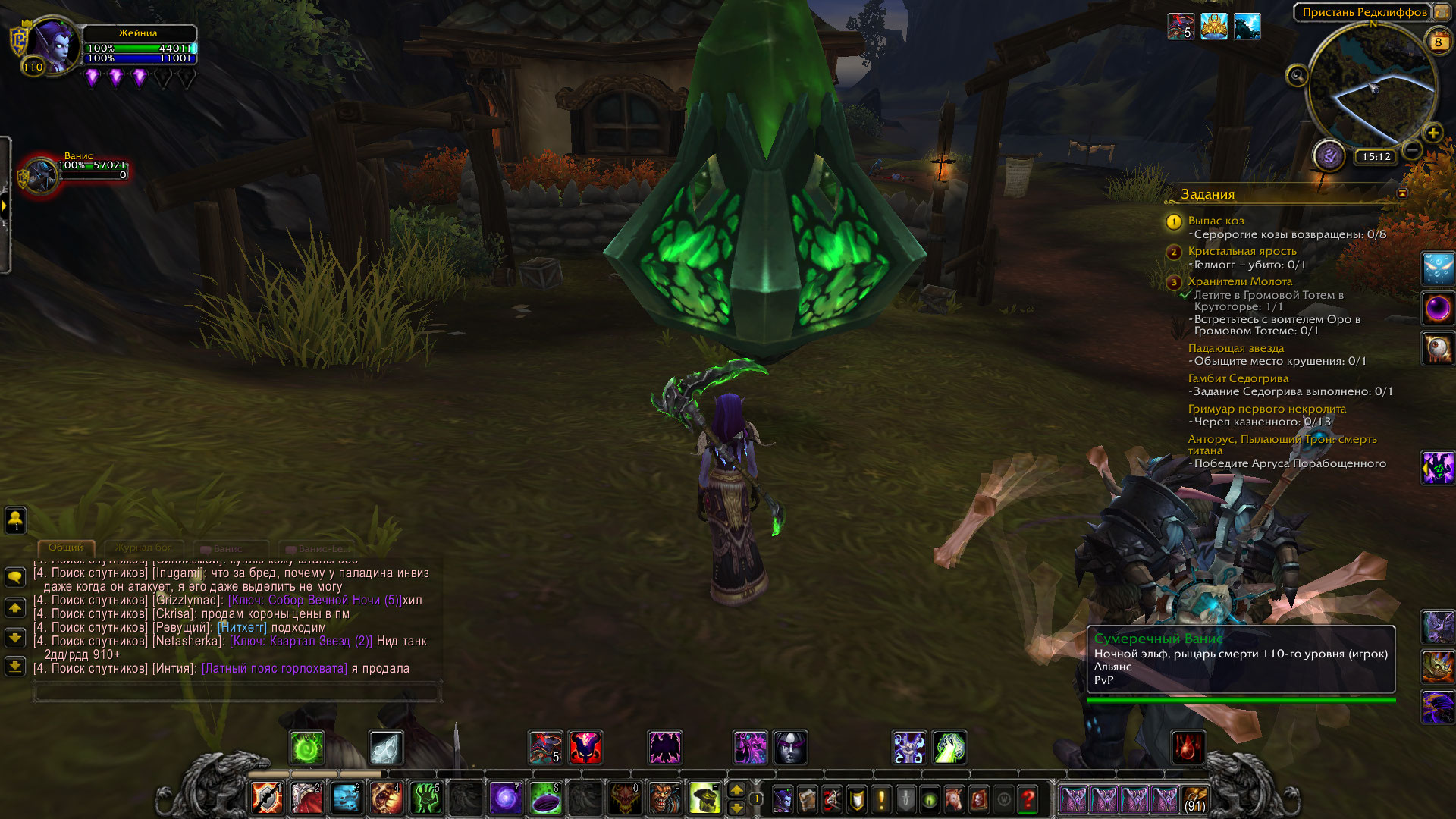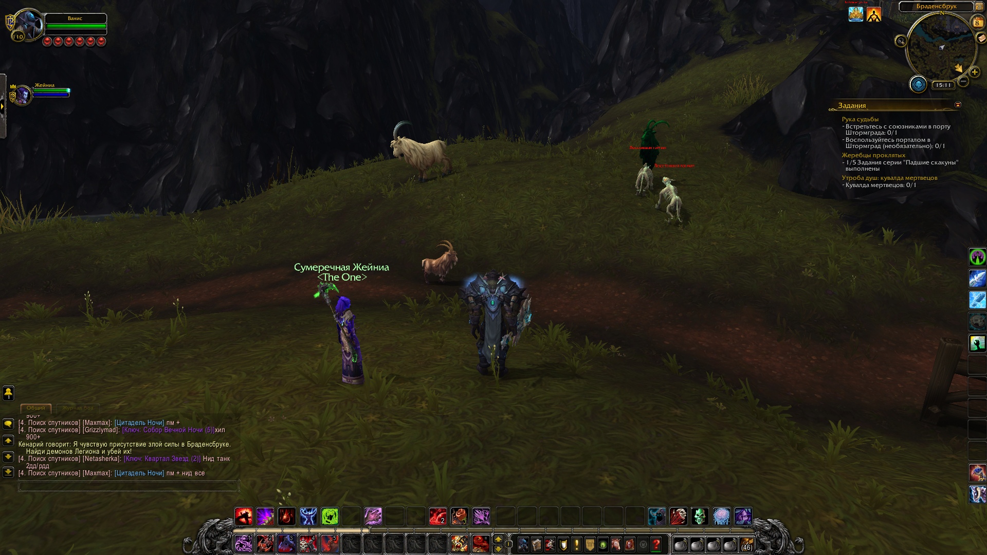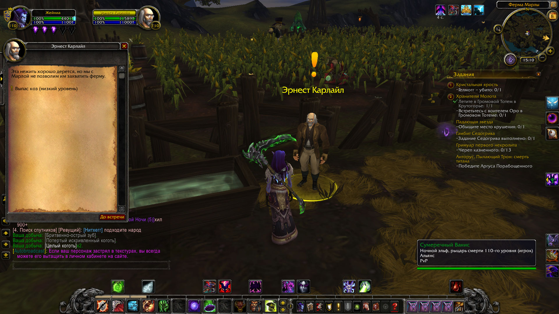 | Additional Information | Скрины были сделаны в одно время разными персонажами. У Чернокнижника "Жейниа" отсутствуют НПС "Серорогие козы", которые необходимы для выполнения задания, в то время как у Рыцаря Смерти "Ванис" НПС "Серорогие козы" присутствуют. | ||||