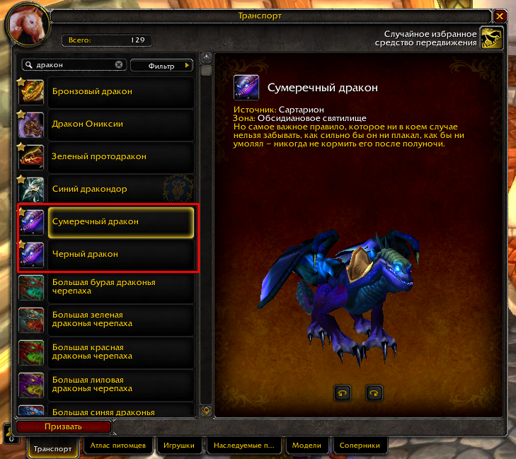 Научите уже людей пользоваться O'Ши. GeraltWitchHunter, подходишь к О'Ши садишься на черного дракона и вводишь циферки 59650 в графе "id ауры маунта". Дальше садишься на сумеречного дракона и вводишь такие вот циферки 59571 в такую же графу. Готово. |