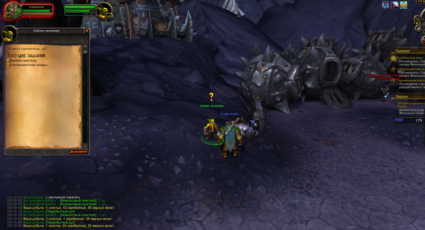 | Description | нерабочие квесты: "Я потопил твой линкор"(не засчитывает изучение чертежа), "Изобилие трав" (не засчитывает выполнение), "Клеймо мастера"(не засчитывает выполнение), "Штурм Аметистовой крепости: начало" (отсутствет ключ. После 3-х прохождений разной сложности так и не выпал, хотя Линдрас убит и без ключа) | ||||