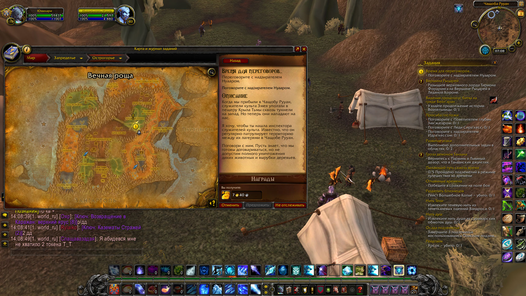 | Description | для выполнения достижения "Хранитель мудрости Запределья" в локации острогорье вечная роща у нпц Хранитель деревьев Чаун, был взят квест "Время для переговоров". Для выполнения указанного задания необходимо найти надзирателя Нууара и поговорить с ним. При выполнении задания надзиратель был найден при активации диалога с ним квест не зачитывается. Игра. на реалме легион 100. | ||||