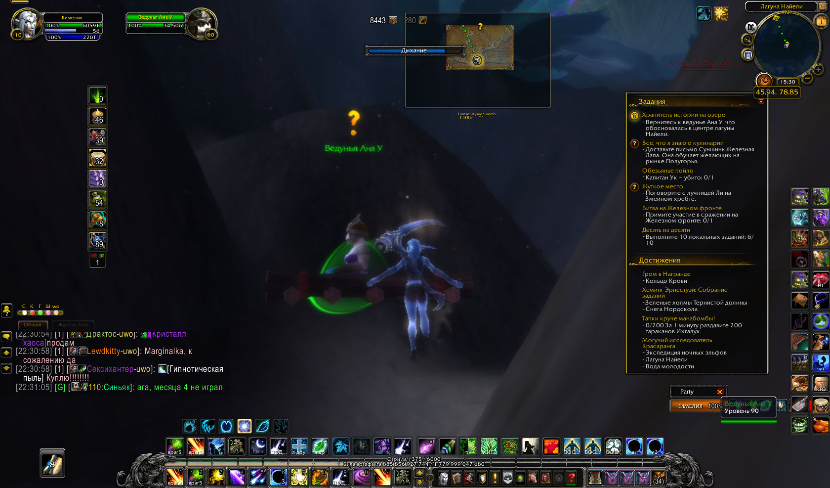 | Description | Невозможно получить достижение ( https://www.wowhead.com/ru/achievement=6535/%D0%BC%D0%BE%D0%B3%D1%83%D1%87%D0%B8%D0%B9-%D0%B8%D1%81%D1%81%D0%BB%D0%B5%D0%B4%D0%BE%D0%B2%D0%B0%D1%82%D0%B5%D0%BB%D1%8C-%D0%BA%D1%80%D0%B0%D1%81%D0%B0%D1%80%D0%B0%D0%BD%D0%B3%D0%B0) так как один из квестов линейки на достягу не сдается-нпс стоит под водой а не на поверхности воды на плоту и не принимает квест https://www.wowhead.com/ru/quest=30669/%D1%85%D1%80%D0%B0%D0%BD%D0%B8%D1%82%D0%B5%D0%BB%D1%8C-%D0%B8%D1%81%D1%82%D0%BE%D1%80%D0%B8%D0%B8-%D0%BD%D0%B0-%D0%BE%D0%B7%D0%B5%D1%80%D0%B5 | ||||