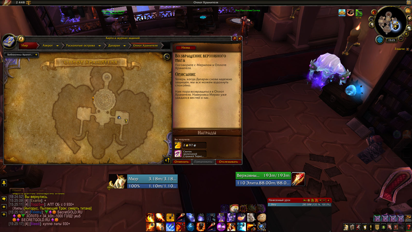 | Description | - Ссылка на неисправный квест/итем/нпс и т.д. и т.п. -https://ru.wowhead.com/quest=46290/возвращение-верховного-мага. - Расскажите суть бага. - Вооообщем, суть бага в том что я не могу сдать квест, так как некому его сдавть. В данной точке должен находиться Мерил. Его тут нет. | ||||