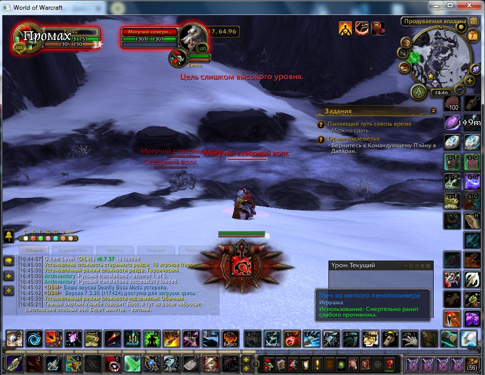 | Description | Не работает итем https://www.wowhead.com/item=137663/soft-foam-sword в Дреноре, пишет что цель слишком большого уровня. Есть вариант с маской голым бить но это очень долго и муторно 500 мобов таким способом бить для даного достижения https://www.wowhead.com/ru/achievement=9452/%D0%B7%D0%B2%D0%B5%D1%80%D0%BE%D0%BB%D0%BE%D0%B2-%D1%81%D1%83%D0%BF%D0%B5%D1%80%D0%B7%D0%B2%D0%B5%D0%B7%D0%B4%D0%B0#comments | ||||