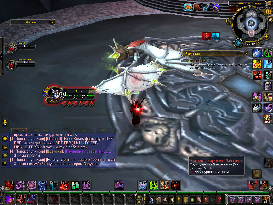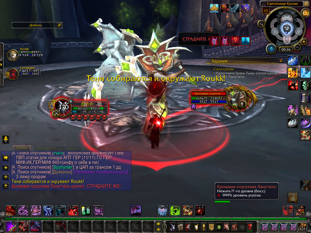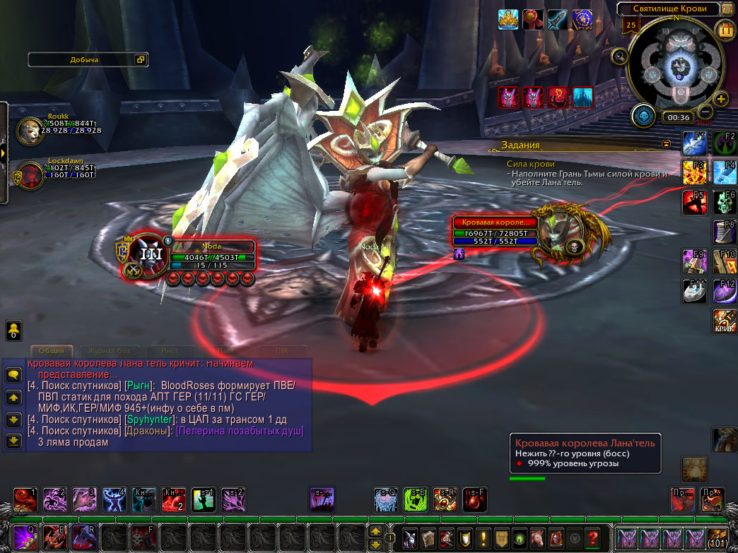 | Description | Не возможно выполнить квест https://ru.wowhead.com/quest=24756/сила-крови. Дело в том, что после пула босса должен вешаться дебаф https://ru.wowhead.com/spell=72132/кровоточащая-рана а так же https://ru.wowhead.com/spell=71510/кровавое-зеркало. Спустя какое то время должен вешаться ещё один дебаф https://ru.wowhead.com/spell=70867/сущность-кровавой-королевы#english-comments с временем действия 1 минута. По истечение времени спуливший босса превращается в вампира и должен укусить тиммейта, после чего дебаф https://ru.wowhead.com/spell=72132/кровоточащая-рана стакается. Баг заключается в том, что сколько бы времени не прошло после пула босса, дебаф https://ru.wowhead.com/spell=70867/сущность-кровавой-королевы не вешается, а соответственно нет стаков кровоточащей раны и значит квест выполнить невозможно. Прошу починить. | ||||