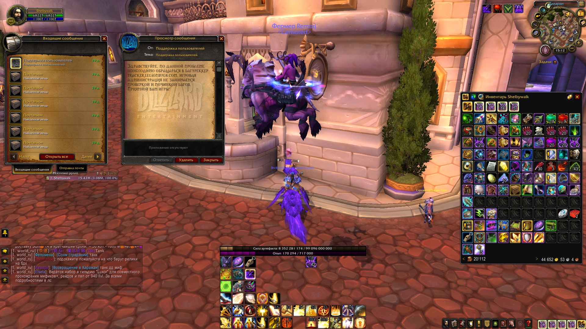 | Description | Достижение "Обезоружен" часть достижения "Слава рейдеру Ульдуара". Выполняли в составе группы из 4 человек, достижение получили все участники кроме меня. Условия были выполнены правильно, тк дали всем кроме меня. Через НПС по исправлению багов не сработало. Пробовали выполнять достижение с других персонажей на аккаунте-тоже не вышло. Вот ссылки на Egami с доказательством прохождения рейда и отсутствием ачива: https://egammi.net/image/qSDQ https://egammi.net/image/qSDR https://egammi.net/image/qSDT Буду рад если проблема решится быстро! С Уважением, deeepsy! | ||||