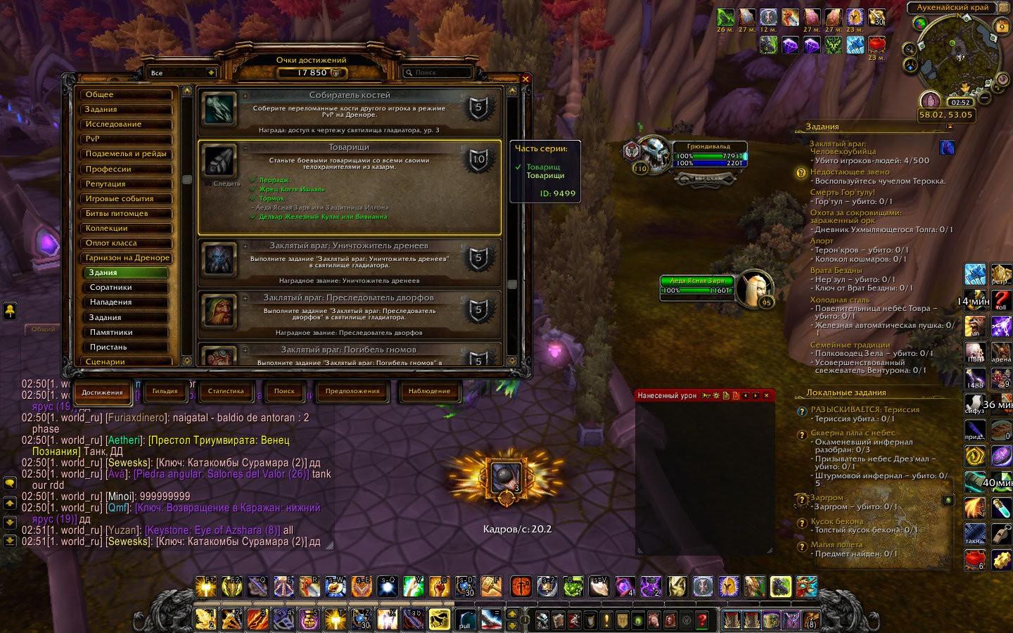 | Description | Добрый день1 Немогу(нету ) квеста у НПС Аеда Ясная Заря для получения ее в телохранители Дренора. Все кв и достижения есть. Додаю во вложении. Так же перезащитовал достижения у дебагера не помогло. | ||||