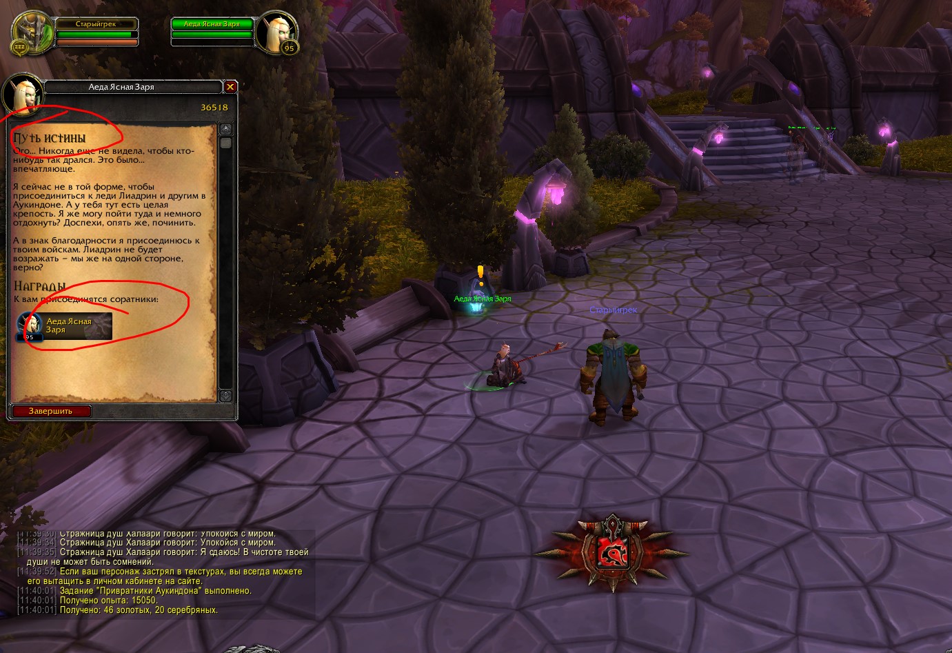 Проблема та же. На зов помощи откликнулся ГМ, но проблема не ушла. Я квест выполнил Привратники Аукиндона . После получил кв на соратника заверщил но соратника не получил |