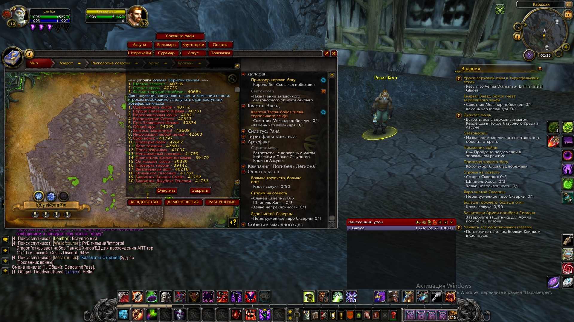 | Additional Information | Обошел всех НПС Ревил Кост, но ни у одного не могу взять этот квест. Суть проблемы, вероятнее всего кроется в моих действиях. Во время квеста "Темные всадники" в катакомбах Каражана, нужно было убить финального босса там, но так как этот моб никак не умирал, у него оставался 1 хп, я сделал релог, после чего оказался недалеко от входа в сам Каражан (в том месте на скриншоте), квест("Темные всадники") сдать уже было можно, но следующий квест ("Одержимость силой") не появился. У НПС в Даларане, вроде как, Де Багер, не получается как-то исправить возникшую проблему. | ||||
