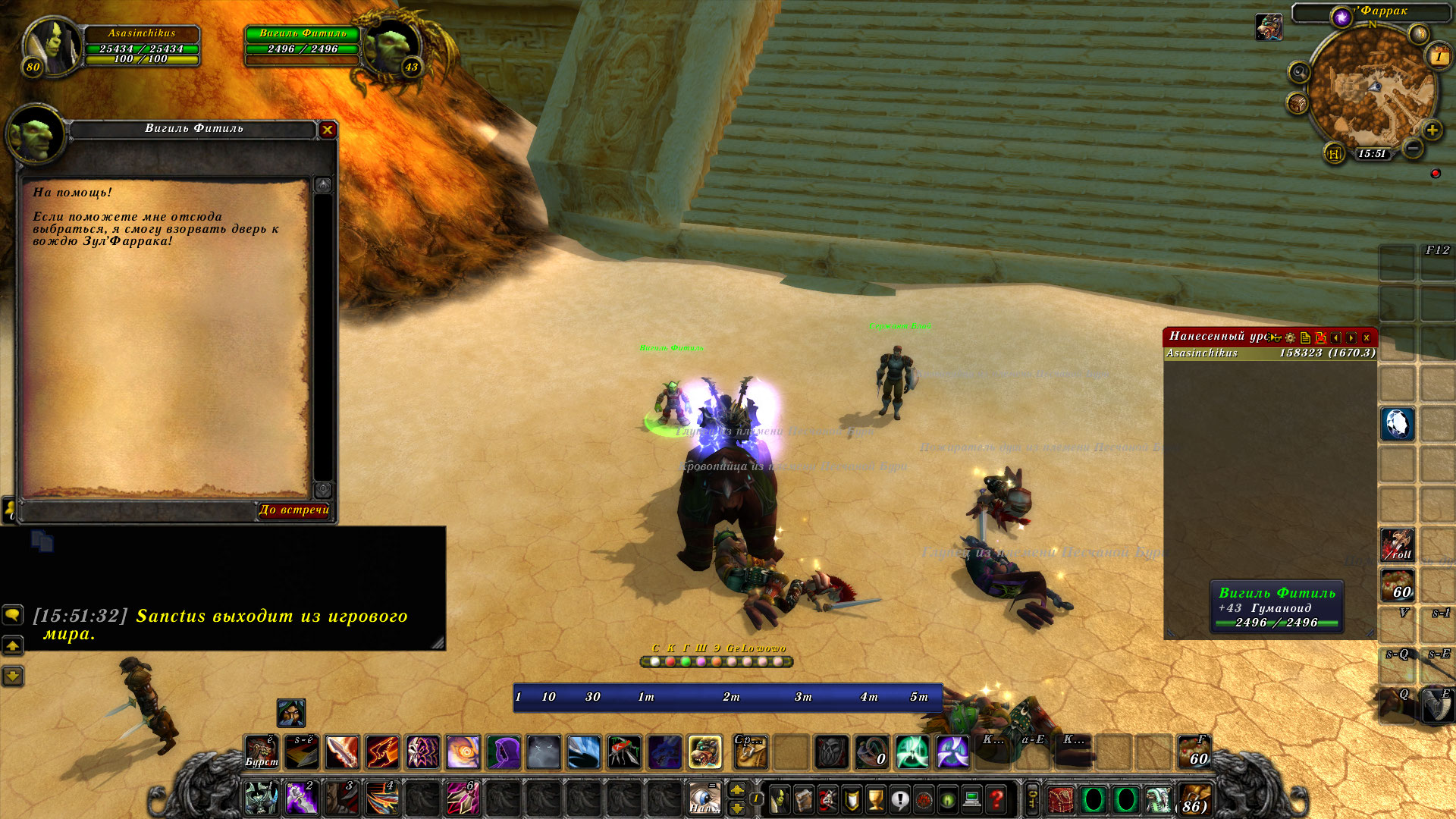 | Description | Частично не работает скрипт перед последним боссом Зул'фарака. С палача забираю ключ, открываю решётку, дружественные НПС спускаются вниз, дальше после убийства волн мобов ни чего не происходит. А должны появляться строчки диалогов у НПС. | ||||