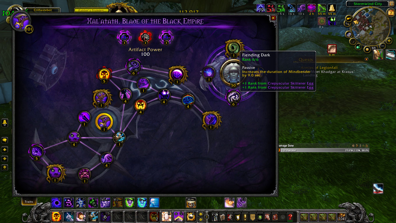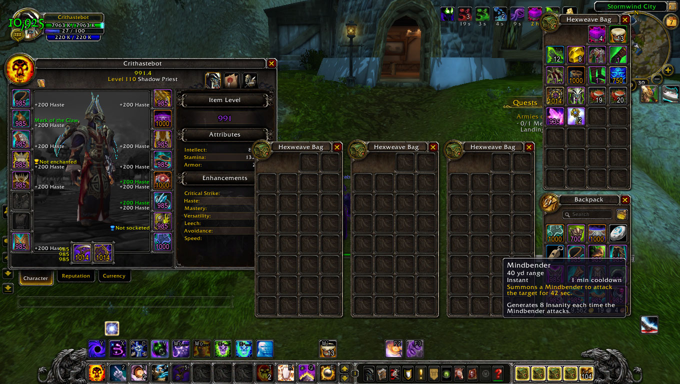 | Description | Hello, I would like to ask. I started to play shadow priest ( I have experience with it from many servers even retail) From what I can see, mindbender is getting really messy. When you put raits to duration of mindbender, it shows me 42 sec. Its time, how long mindbender should be active. When I summon him, he is active for only 24 seconds. I tried to reequip weapon but it still the same issue. Also second thing, it seems insanity drain in the Void form seems to be a little bit higher than it should be so you can not reach normally 55 stacks, which shoudl be basic. | ||||