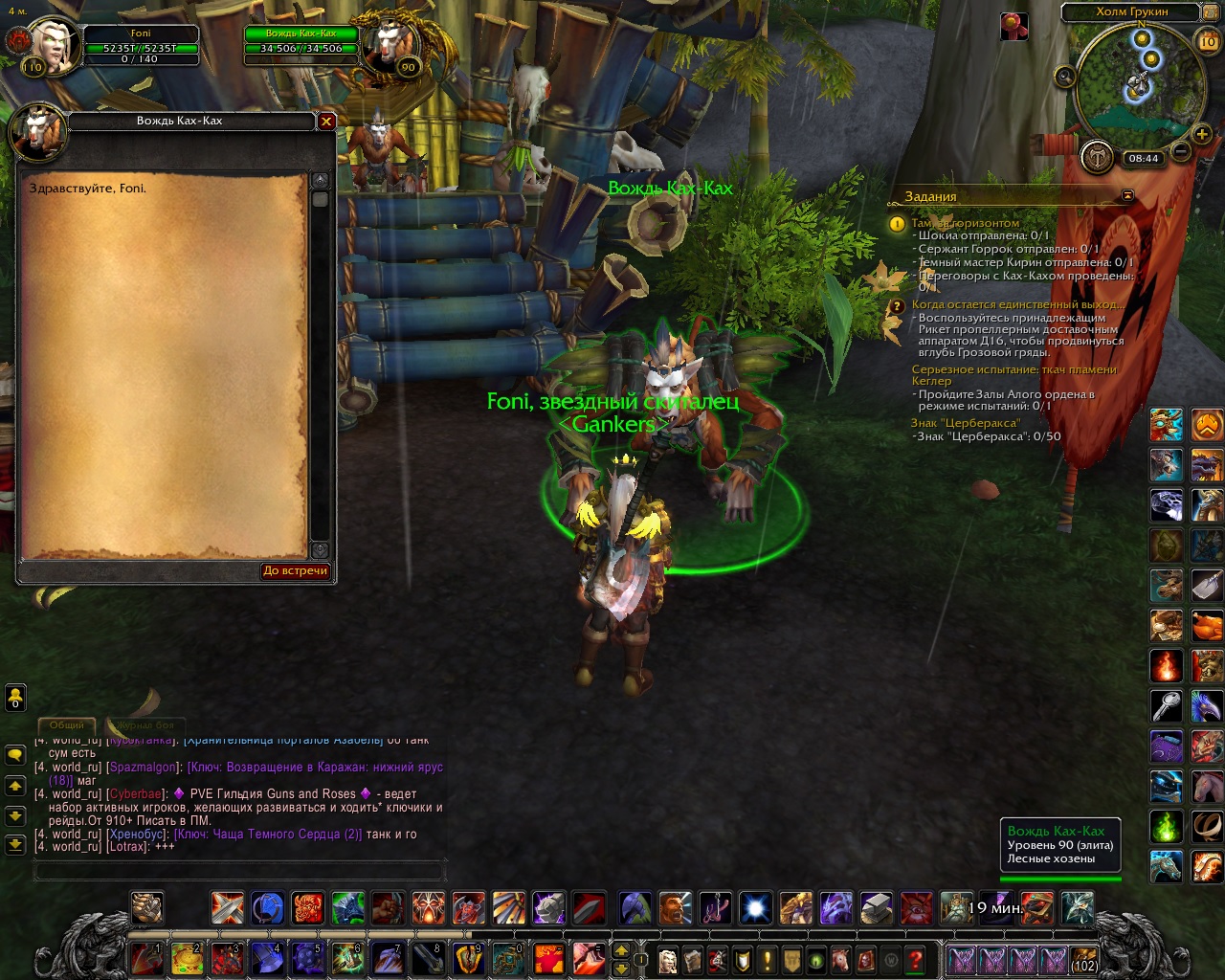 | Description | Квест называется "там за горизонтом" Находиться в Нефритовом лесу, а точнее на Холме Грукин При взятие квеста у Генерала Назгрима должен появиться диалог у четырех NPC появляется только у трех из четырех можно поговорить с Шокиай , Сержантом Горроком и темным мастеров Кирин а с вождем Ках-Ках не появляется диалог при отмене и взятие квеста заново все остается по прежнему | ||||