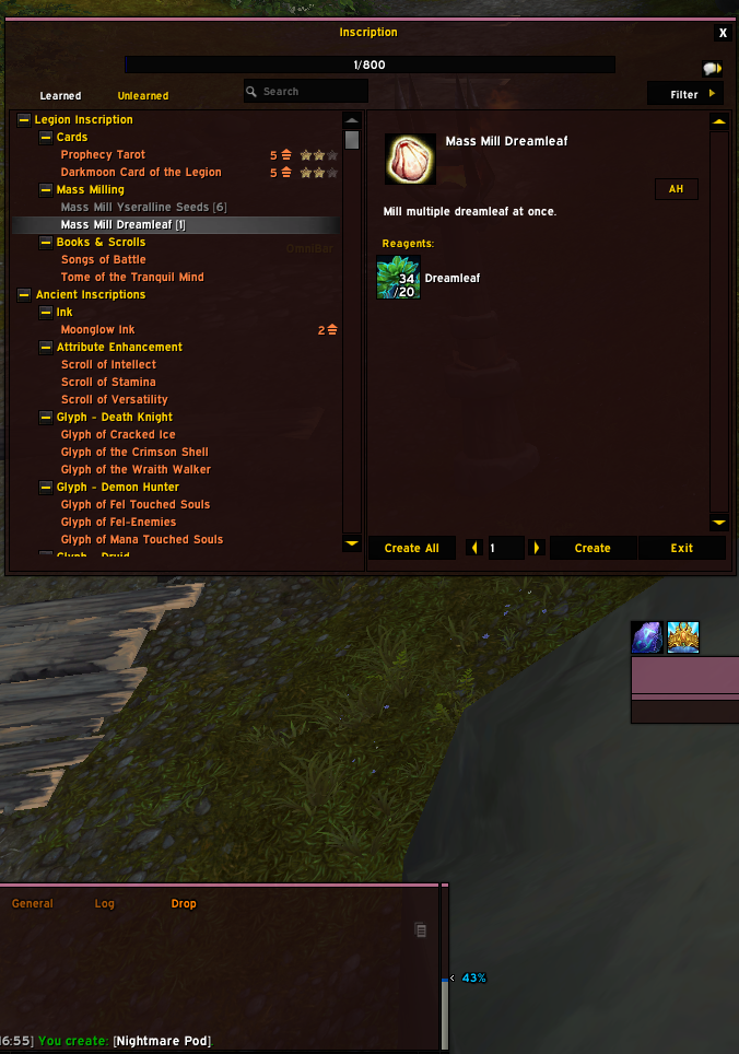 | Additional Information | https://www.wowhead.com/spell=209659/mass-mill-dreamleaf#comments | ||||
