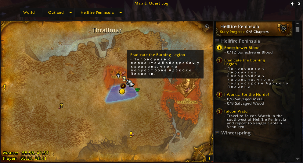 | Description | The Outland Quest in Hellfire Peninsula, Eradicate the Burning Legion, is not properly translated. | ||||