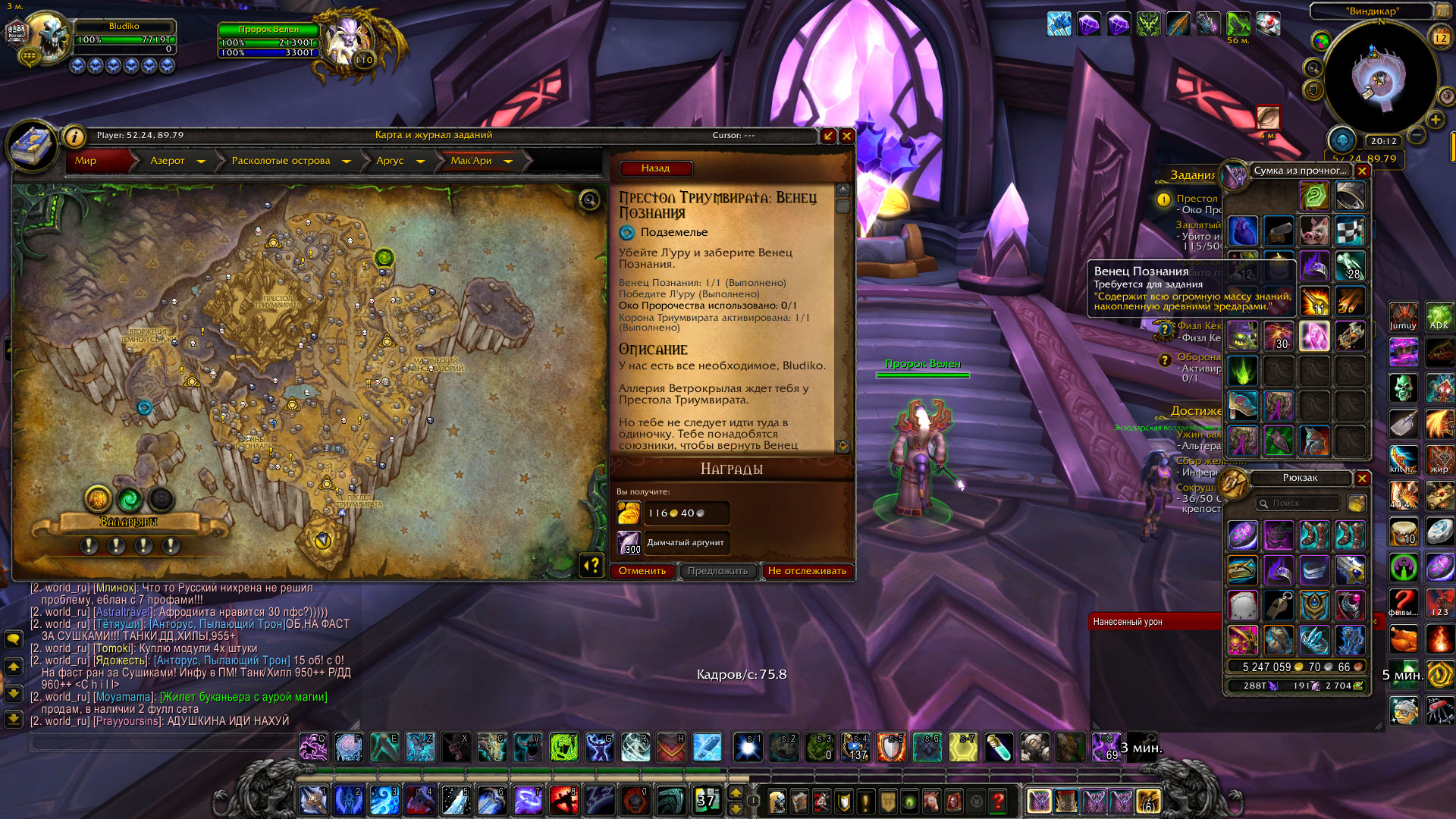| Summary | 0026709: https://www.wowhead.com/ru/quest=47654/престол-триумвирата-венец-познания , не сдается | ||||