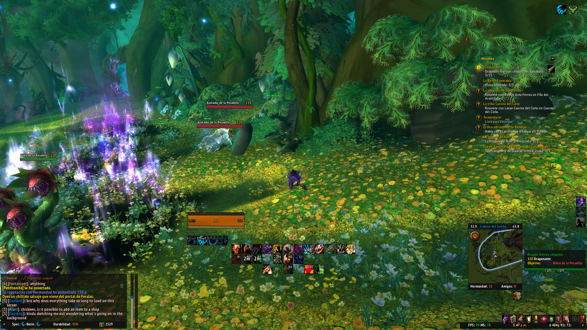 | Description | I initially thought Ela'lothen was missing, but that wasn't the case, I suspect that the problem with the artifact is that the "stones reset" next day, when they shouldn't afik. According to WowHead, once a day (Another bug? I got the three stones in one day) we get a daily dreamway event roll quest deciding if we'll get the emote (You hear a strange feral screech coming from the Feralas/Duskwood/Hitherlands) portal or not. Okay so, to explain better, there's these scripts to check if you've completed the requirements: /dump IsQuestFlaggedCompleted(44326) (daily dreamway event roll) /dump IsQuestFlaggedCompleted(44327) (Feralas owlcat stone active) /dump IsQuestFlaggedCompleted(44328) (hinterlands owlcat stone active) /dump IsQuestFlaggedCompleted(44329) (Duskwood owlcat stone active) /dump IsQuestFlaggedCompleted(44330) (Duskwood owlcat stone touched) /dump IsQuestFlaggedCompleted(44331) (Feralas owlcat stone touched) /dump IsQuestFlaggedCompleted(44332) (hinterlands owlcat stone touched) I did Feralas two days ago, Duskwood yesterday, today I got Hintherlands and touched the stone as well, then when I got to Dreamgrove, Ela'lothen wasn't there. Later, to my surprise, I got another emote for Feralas. Touched the stone, run the scripts and to my surprise, Duskwood turned out false, when I did touch the stone previously. Later, I got the emote for Duskwood again (btw, portal to Duskwood doesn't work), touched the stone again, run the scripts again and they turned out true all of them. Went to Dreamgrove and Ela'lothen was there. For the previous days, I only have an screenshot for Duskwood. The only problem is, that the screenshots are in Spanish, hope it isn't a hassle. 1st screenshot: Emote for Duskwood yesterday ("Oyes un chillido salvaje que proviene del Bosque del Ocaso/You hear a strange feral screech coming from the Duskwood portal") 2nd screenshot: Emote for Feralas today ("Oyes un chillido salvaje que proviene de Feralas/You hear a strange feral screech coming from the Feralas portal") 3rd screenshot: Scripts after touching the feralas stone today, duskwood as false | ||||