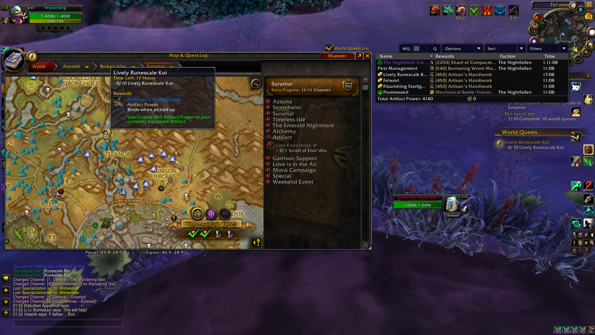 fishing is at 966 ( i have a bug where maximum fishing is set to 3145) my location was near tel'anor 25 28 coords i was able to do other fishing quests, just not the one near Tel'anor location WoWScrnShot_072123_074100.jpg (552,816 bytes) |