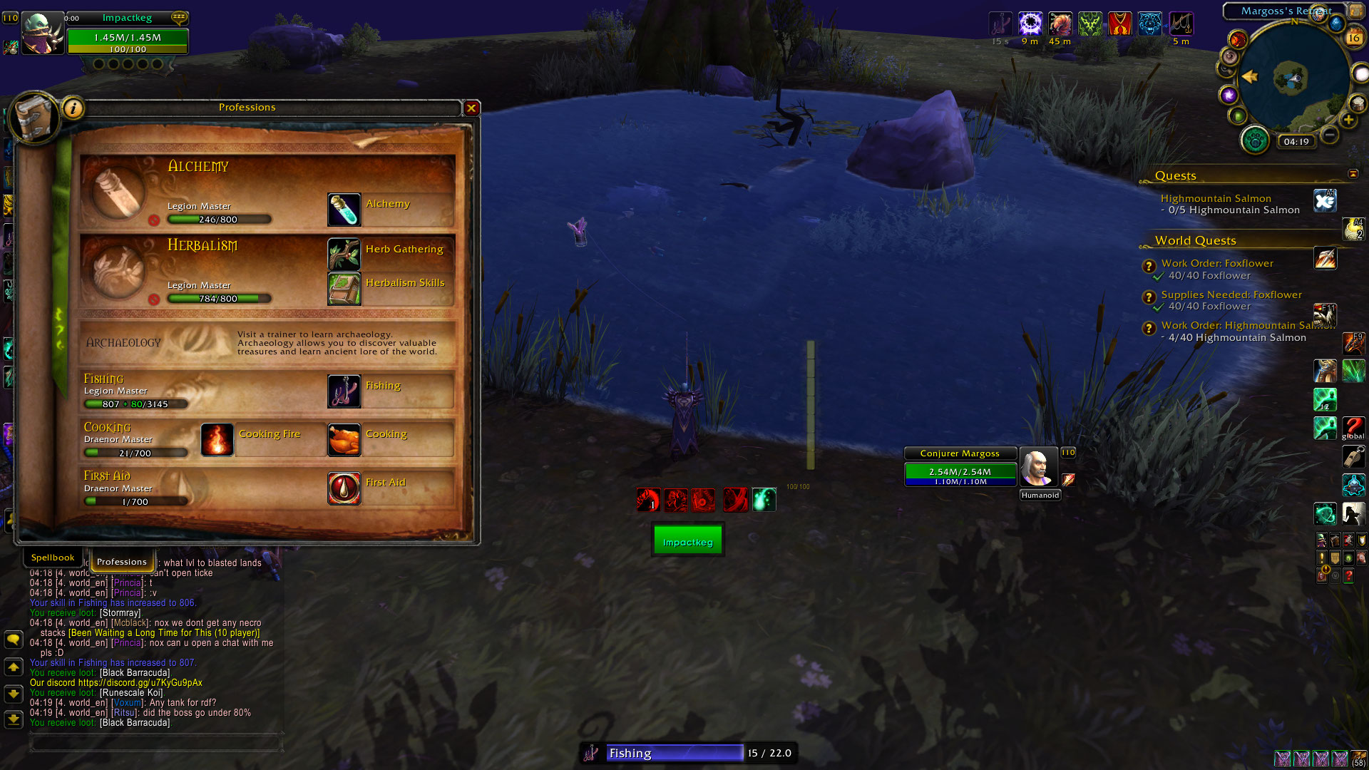 | Description | maximum skill level should be 800 but instead is 3145 I'm not exactly sure when this change happend I remember first learning fishing from Marcia, but it was only up to 75 level. then using : https://www.wowhead.com/item=111356/fishing-guide-to-draenor and these npc's https://www.wowhead.com/npc=95844/marcia-chase https://www.wowhead.com/npc=108825/conjurer-margoss#sells | ||||