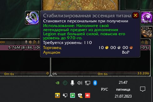| Description | Стабилизированная эссенция титана по красоте, мощный предмет ничё не скажешь, вендор сказал спасибо https://www.wowhead.com/ru/item=151423 | ||||