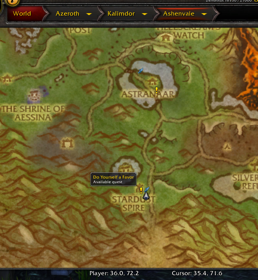 | Description | In Ashenvale, Stardust Spire, after completing the quest "They took our Gnomes", a ''! appears on the map with the quest name "Do yourself a favor" but no one in the area gives it and it doesn't appear on the minimap. Should I mention again that I have already completed the previous quests? | ||||