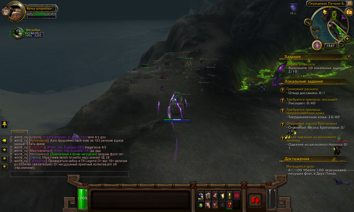 | Description | видос как +- должно работать https://www.youtube.com/watch?v=-s9G4r3o8V0 2.https://www.wowhead.com/ru/achievement=10398/круг-барабанов Достижение получается в центральной комнате Громового Тотема. Для выполнения необходимо собрать 5 или более человек и заставить их одновременно прыгать.(эту не пробовал, но скорее всего тоже не работает) 3.https://www.wowhead.com/ru/achievement=10626/вжик мини-эвент гонки улиток видос как должно быть https://www.youtube.com/watch?v=nspJQ_Zu7E0 у нас не реализован вообще | ||||