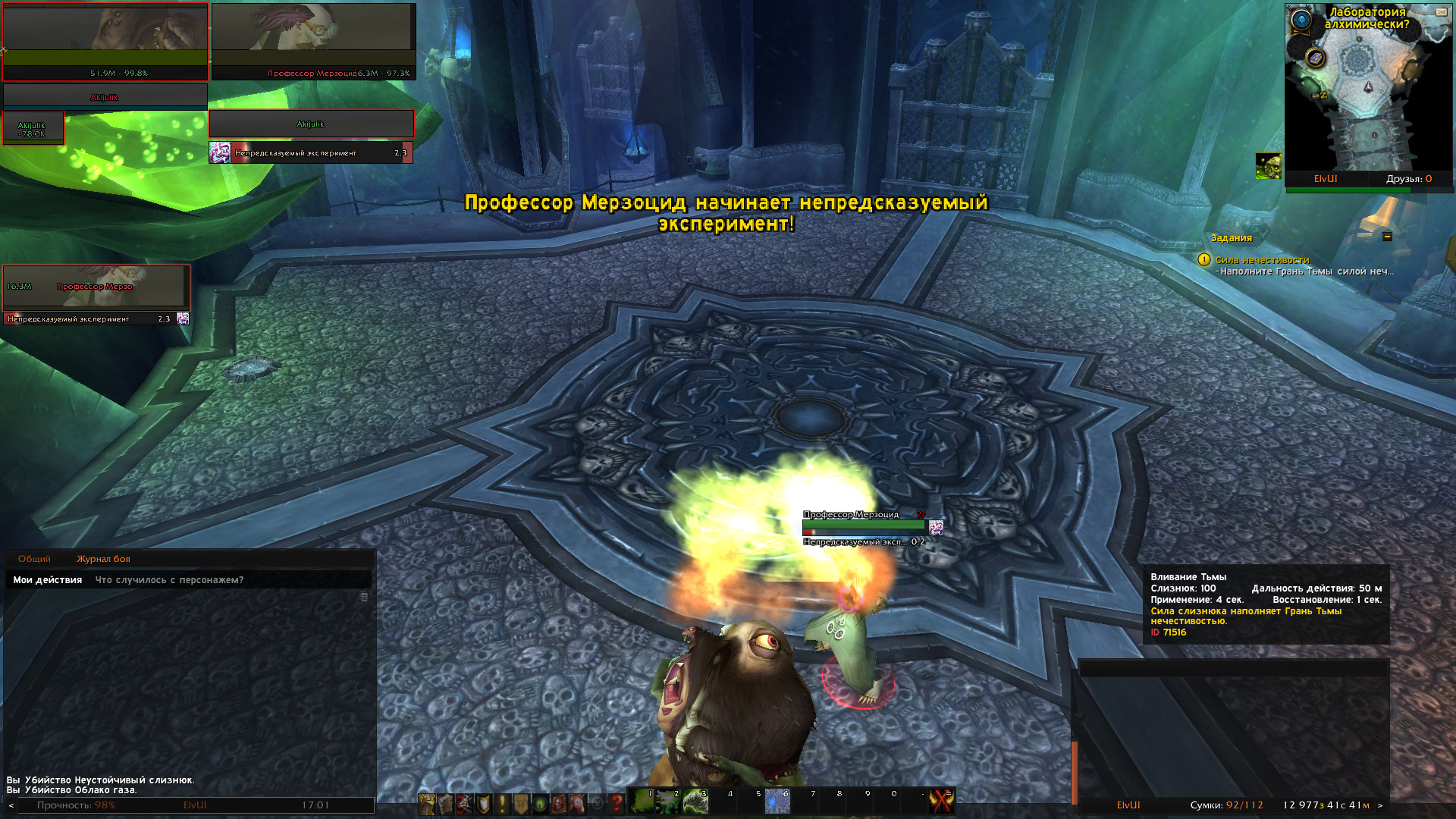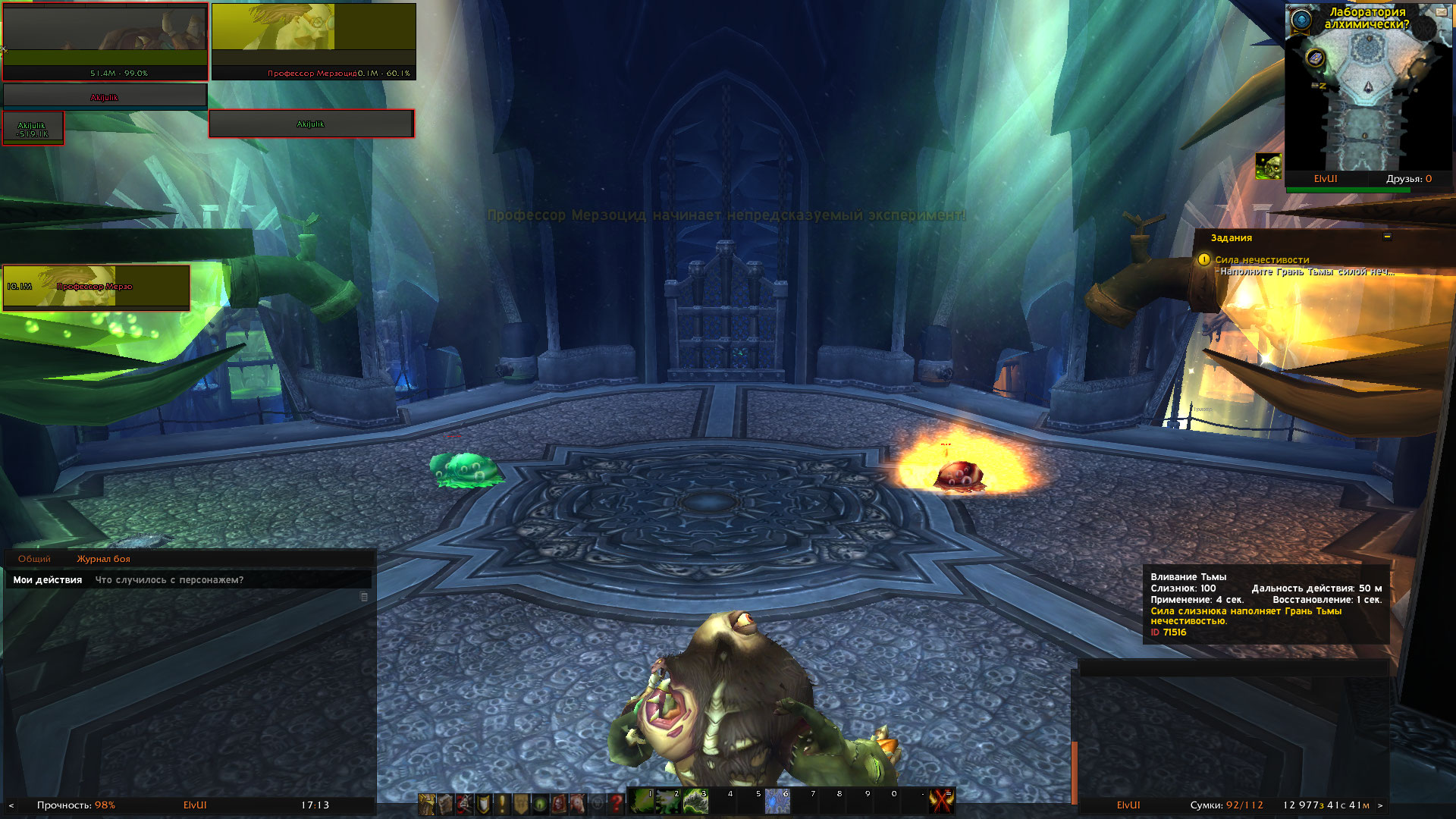 | Description | Не работает квест https://www.wowhead.com/wotlk/ru/quest=24749/%D1%81%D0%B8%D0%BB%D0%B0-%D0%BD%D0%B5%D1%87%D0%B5%D1%81%D1%82%D0%B8%D0%B2%D0%BE%D1%81%D1%82%D0%B8 Квест является цепочкой для легендарного оружия https://www.wowhead.com/wotlk/ru/item=49623/%D1%82%D0%B5%D0%BC%D0%BD%D0%B0%D1%8F-%D1%81%D0%BA%D0%BE%D1%80%D0%B1%D1%8C . Чтобы выполнить квест необходимо сначала одеть оружие https://www.wowhead.com/wotlk/ru/item=49888/%D0%B3%D1%80%D0%B0%D0%BD%D1%8C-%D1%82%D1%8C%D0%BC%D1%8B потом выпить зелье возле стола прямо перед боссом https://www.wowhead.com/wotlk/ru/npc=36678/%D0%BF%D1%80%D0%BE%D1%84%D0%B5%D1%81%D1%81%D0%BE%D1%80-%D0%BC%D0%B5%D1%80%D0%B7%D0%BE%D1%86%D0%B8%D0%B4 . После игрок превращается в поганище и нужно пить/поглощать зеленые лужи которые спавнятся на протяжении боя с боссом, после чего набрав 100 энергии использовать кнопку "Вливание Тьмы", но вот незадача этих самых луж попросту нету, в связи с чем нельзя выполнить квест. | ||||