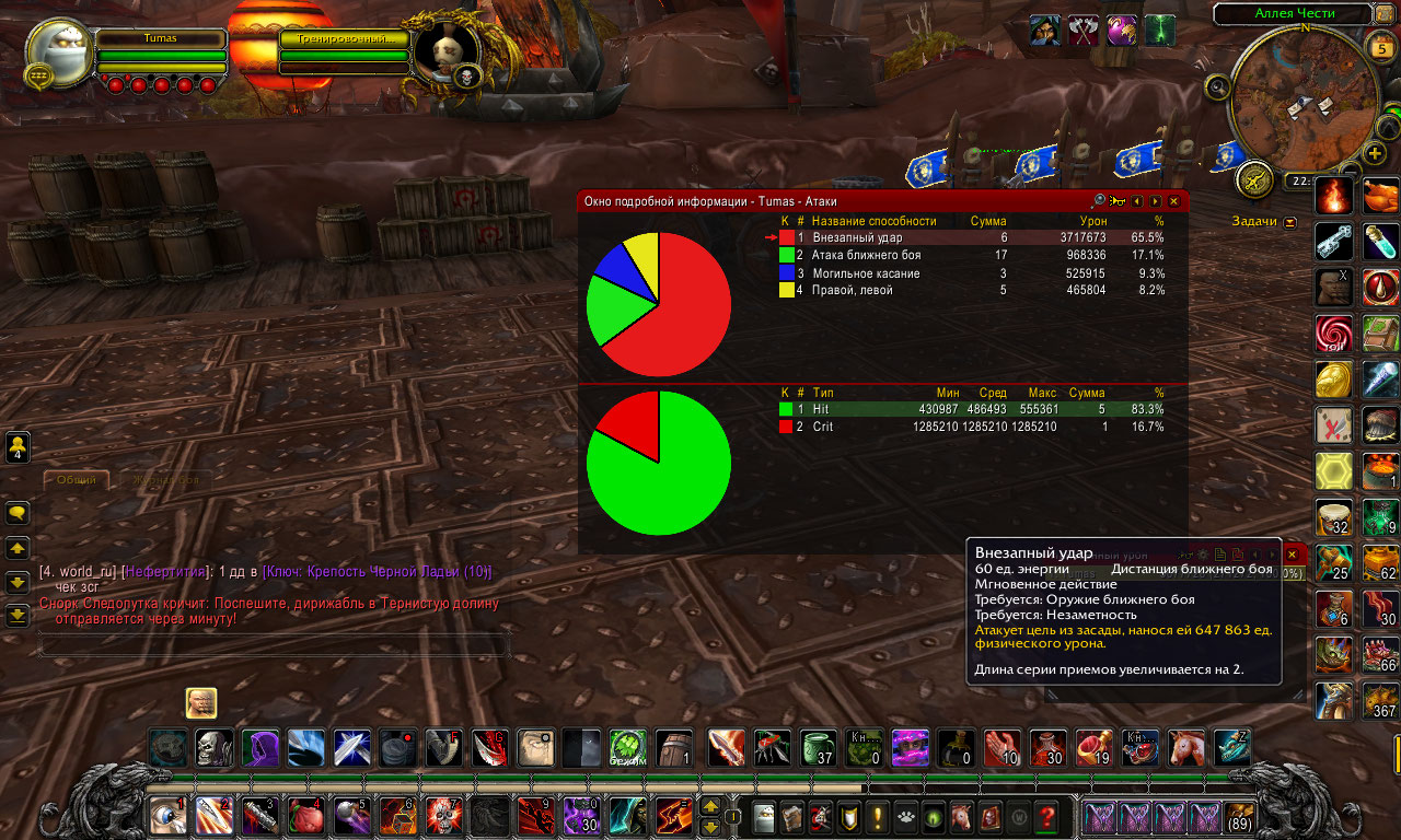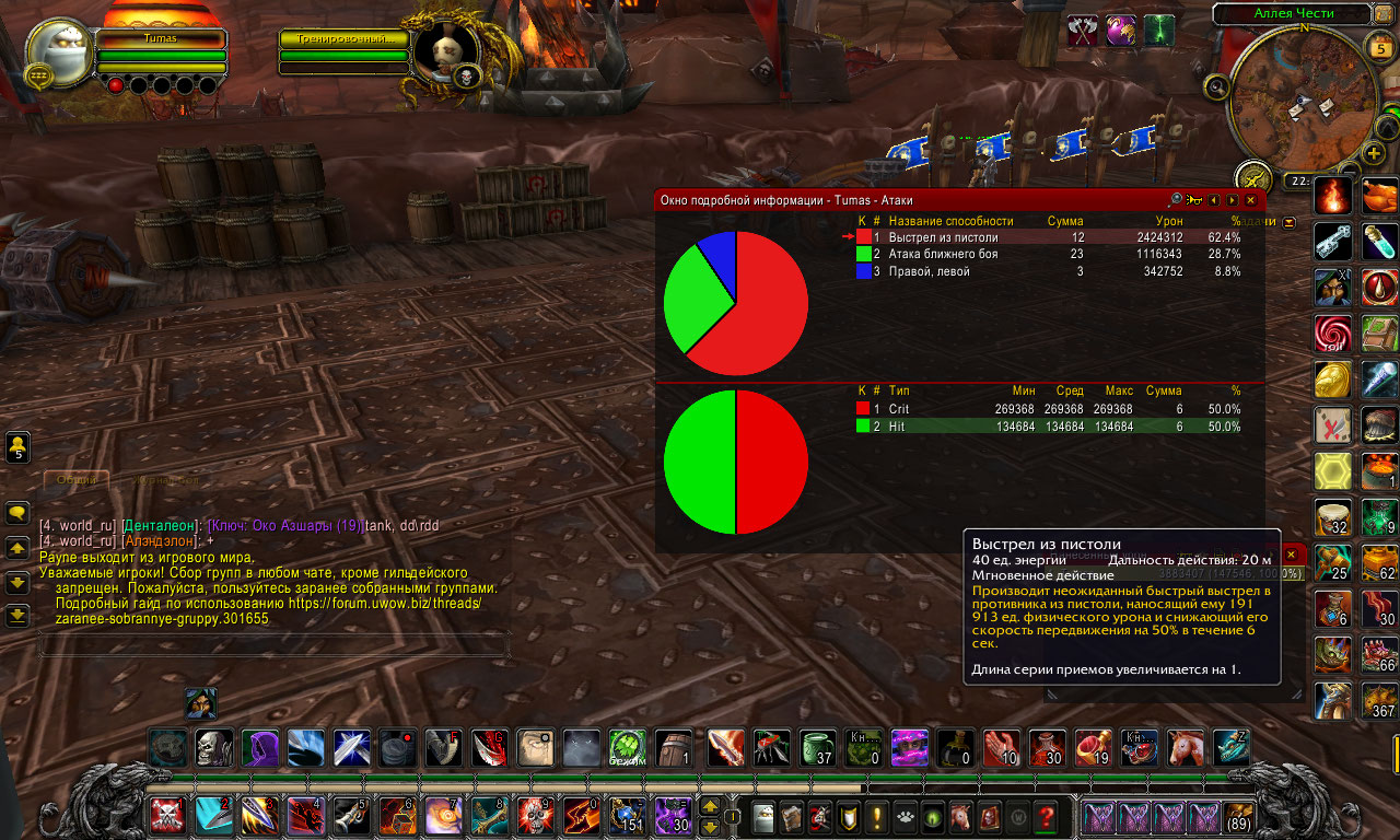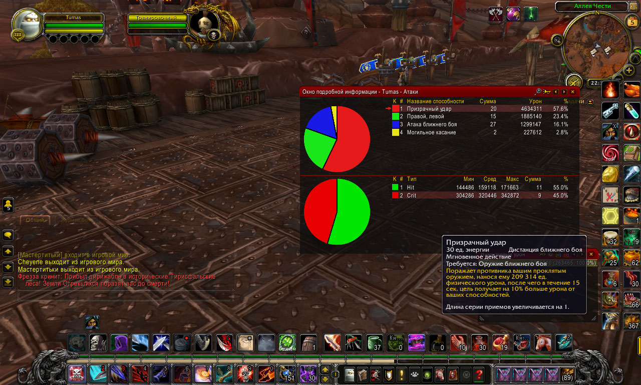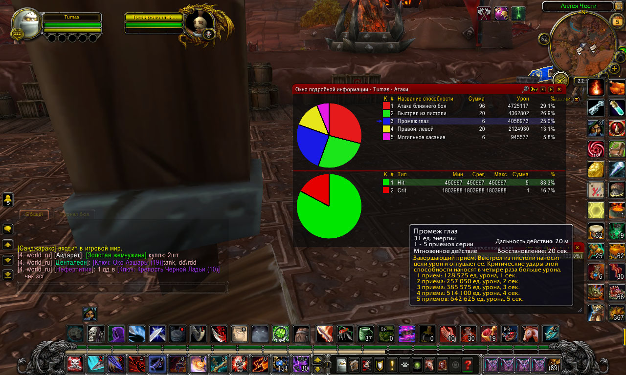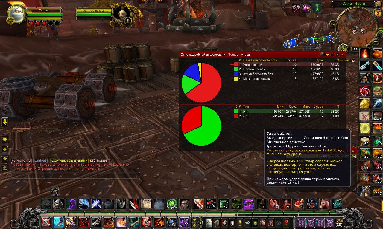Вот скрины. Детайлс и Рекаунт показывают одинаковые результаты. Напомню, урон без бафов. Призрачный удар.jpg (335,994 bytes) Удар саблей.jpg (331,390 bytes) Пронзить насквозь.jpg (337,295 bytes) Выстрел из пистоли.jpg (341,067 bytes) Промеж глаз.jpg (303,925 bytes) Внезапный удар.jpg (321,869 bytes) Пока все.jpg (298,317 bytes) |