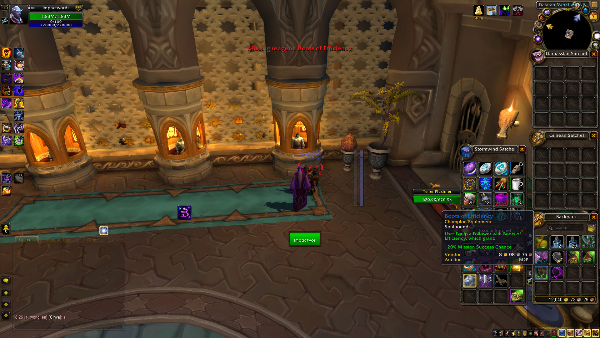 | Description | https://www.wowhead.com/item=138413/boots-of-efficiency#comments When i attempt to equip this item on a follower i get the error: "missing reagent" | ||||