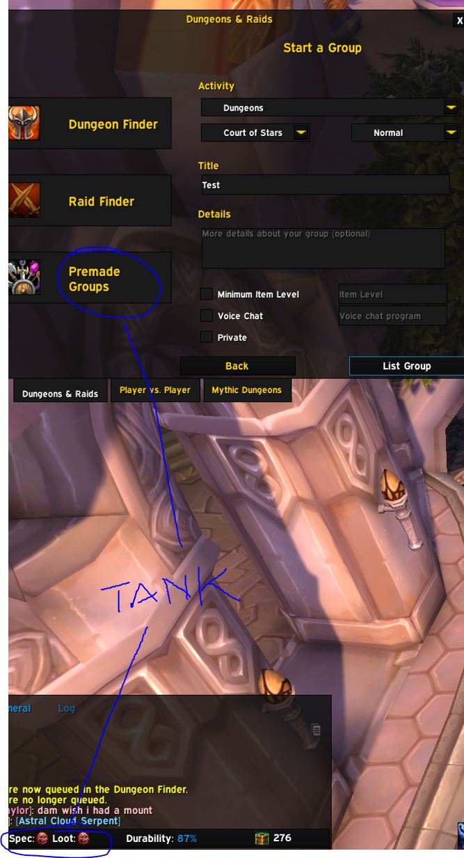 | Additional Information | Even Premade groups that I create cannot detect tank role. It puts as dps even though I'm Blood DK | ||||