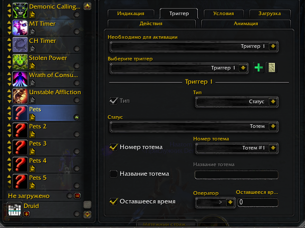 | Additional Information | https://youtu.be/Q5DlwAwvWXM?si=n3vY-WMxJnmQhZmO&t=326 На видео показано что каждый пак бесов призванный рукой гулдана отображается как отдельный "тотем" бафф у рамки персонажа, и зловещие охотники показаны оба как один бафф, скриншот из видео нескольких стаков бесов у рамки персонажа. Второй скриншот из https://wago.io/Nkgbld8YW Ipse's Warlock Weakauras Profile, в его настройках правильно отображаются зловещие охотники (почти правильно ибо они отображаются как 2 баффа вместо одного) но бесы не отображаются вообще так как они не считаются за "тотем". Ещё не уверен на 100% должен ли отображаться или нет но https://www.wowhead.com/spell=216187/grimoire-of-service демон призванный этим не отображается как "тотем" тоже. | ||||