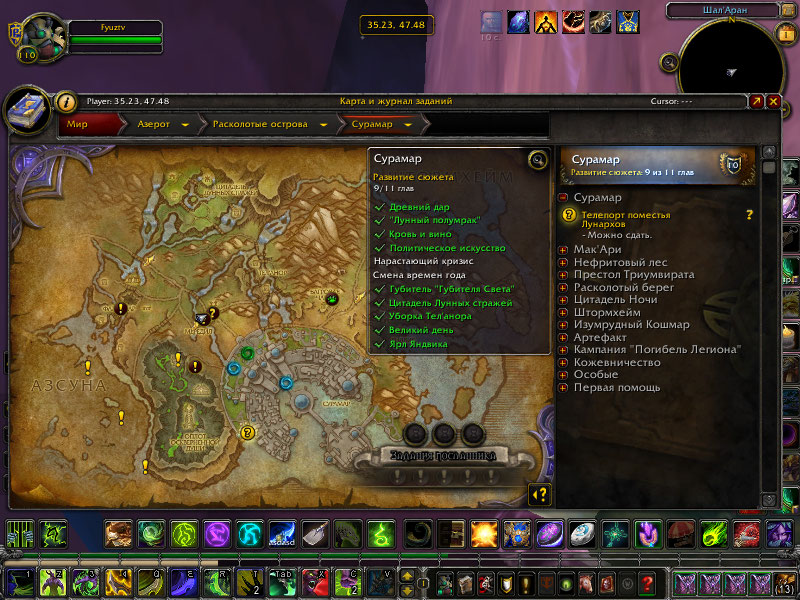 | Description | Как ни в чём ни бывало я выполнял квесты в локации Сурамар. Выполнял выполнял, что закончились вообще все квесты на карте. нигде просто не было квестов для начинания цепочки "Смена времён года". Я просил помощи у игроков с 2-х местными летающими маунтами они провозили меня по всему Сурамару, все попытки были тщетны. Писал команду .q status 40502(данный квест) и мне писало -- "вы не можете начать этот квест т.к вы его не выполнили" это меня завело в ступор. Нип-О'ши говорит что я его не делал. Как мне начать его делать если банально негде. | ||||