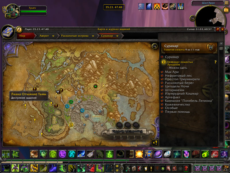 Задание https://ru.wowhead.com/quest=43502/%D1%81%D0%BC%D0%B5%D0%BD%D0%B0-%D0%B2%D1%80%D0%B5%D0%BC%D0%B5%D0%BD-%D0%B3%D0%BE%D0%B4%D0%B0 года выдает https://ru.wowhead.com/npc=107126/%D1%81%D1%82%D1%80%D0%B0%D0%BD%D0%BD%D0%B8%D0%BA-%D0%B4%D0%BE%D0%BB%D0%B0-%D1%84%D0%B0%D1%80%D0%BE%D0%B4%D0%B8%D0%BD тот же самый нпс что и заканчивает квест https://ru.wowhead.com/quest=43362/%D1%81%D1%83%D1%89%D0%BD%D0%BE%D1%81%D1%82%D1%8C-%D1%81%D0%BD%D0%B0 можно было бы догадаться, что если он не выдает квест, надо сделать предыдущий? Чтобы не было таких проблем на форуме есть тема с порядком квестов на каждую главу всех частей Расколотых островов, а также есть и специальный аддон, который упрощает жизнь. http://f4.uwow.biz/topic/289107-questline-tester-addon-dlya-proverki-kvestovyh-tcepochek-legio/ |