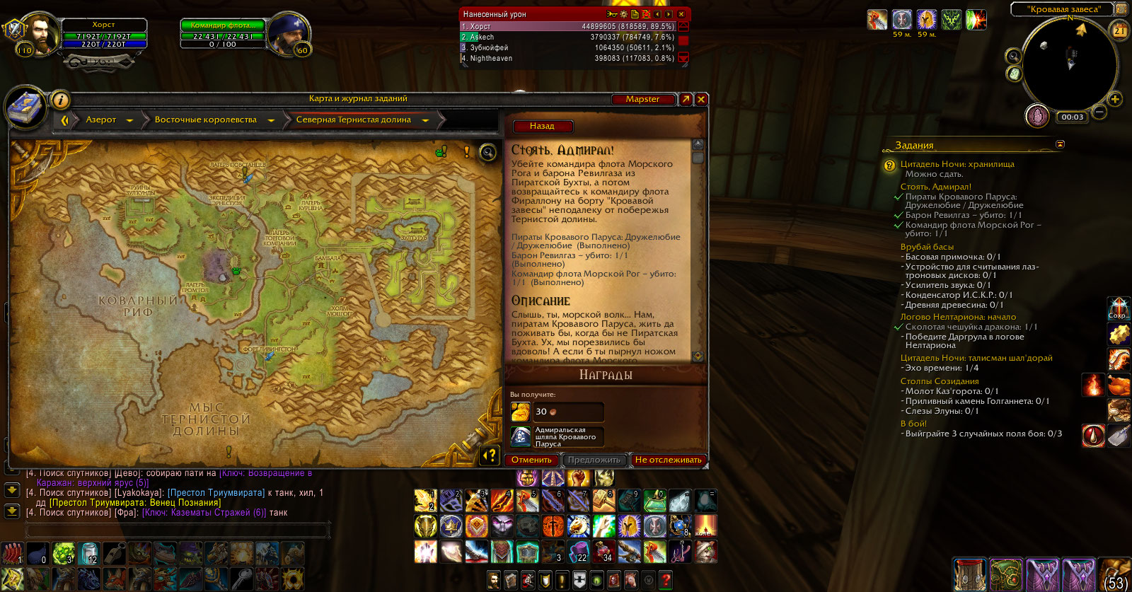| Description | Для сдачи квеста https://ru.wowhead.com/quest=4621/%D1%81%D1%82%D0%BE%D1%8F%D1%82%D1%8C-%D0%B0%D0%B4%D0%BC%D0%B8%D1%80%D0%B0%D0%BB были выполнены все условия, как то: соответствующий уровень репутации, убийство Барона Ревилгаза и Командира флота Морского Рога. Условия выполнения засчитаны, но не получается сдать квест у НПЦ https://ru.wowhead.com/npc=2546/%D0%BA%D0%BE%D0%BC%D0%B0%D0%BD%D0%B4%D0%B8%D1%80-%D1%84%D0%BB%D0%BE%D1%82%D0%B0-%D1%84%D0%B8%D1%80%D0%B0%D0%BB%D0%BB%D0%BE%D0%BD Скриншоты прилагаю. | ||||