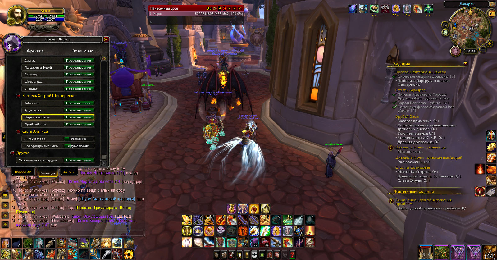 Да, репутация фракции "Пиратская бухта"- превознесение. Сам не качал, поднялась багом каким-то, по видимому. Каким - даже не смогу предположить, поскольку не отслеживал этот момент и не изучал. Скрин прилагаю. Понимаете, если я сейчас буду её понижать, я с ума сойду... И не факт, что квест смогу сдать. Что делать-то мне? |