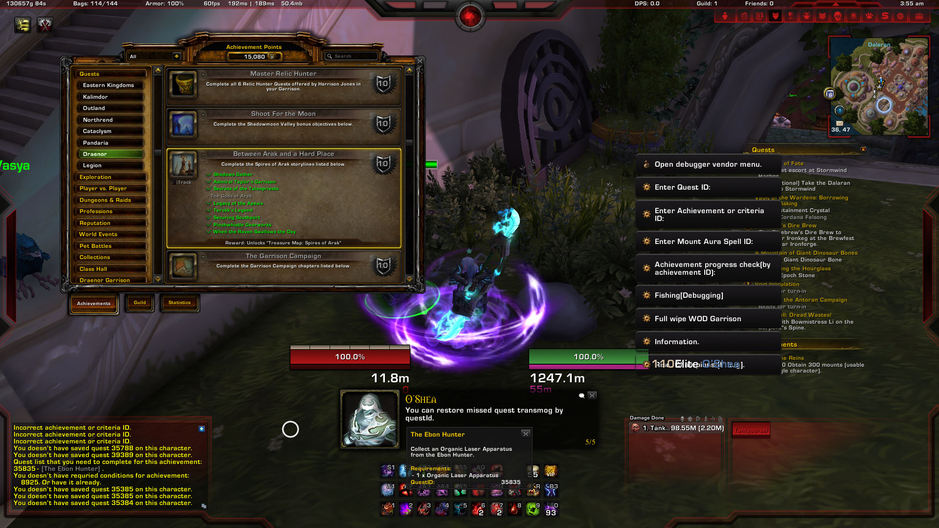 | Description | I, as a horde player, finished Between Arak and a Hard Place (Achievement ID:8925) a few years ago. After changing factions to alliance, it shows I haven't completed this achievement yet. As a result, I clicked O'Shea (NPD ID:600023) in Dalaran and entered the criteria ID from wowhead to help me reach the above achievement. Unfortunately, one of the criteria can't be met. So I went to the Spires of Arak and decided to do it by myself. However, I found that most of the quests couldn't be finished, such as Old Friends (Quest ID:35293) and Back on Track (Quest ID:35719), and some NPCs just disappear without any reasons. It seems everything is totally bugged. What should I do now? Is there a way to reset the achievement? Thank you. | ||||
