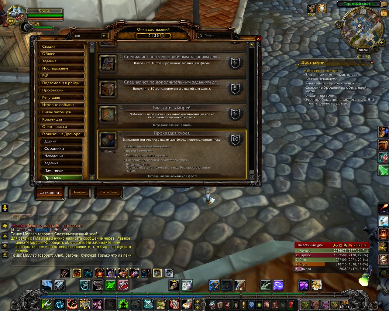 | Description | В рамке отслеживания квестов и достижений появилось несуществующее достижение " Морские просторы". Причём текст достижения соответствует достижению пристани на Дреноре "Прокладка курса". Пожалуйста уберите это достижение из отслеживаемых. Оно мешает отслеживать выполнение квестов. Персонаж Крумер, у которого случился этот баг, даже не был ещё на Дреноре. | ||||